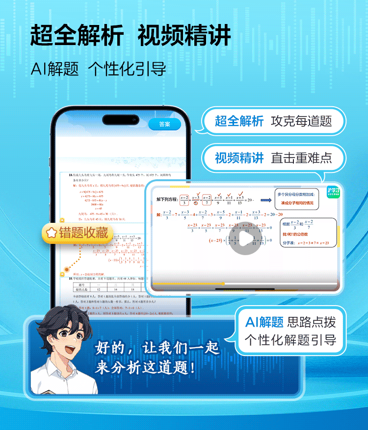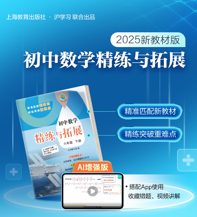 新教材增强版 | 初中数学精练与拓展(课时练习1:1配套;超全答案解析,重难题视频精讲,AI解题指导)