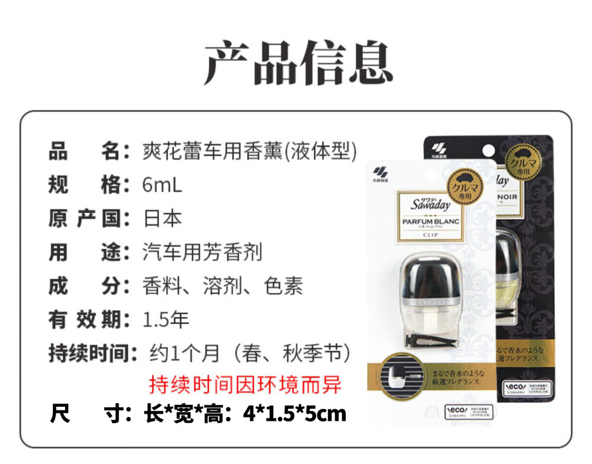 KOBAYASHI小林制药 车载空气清新剂去异味消臭元 6ml/盒(多规格香型)