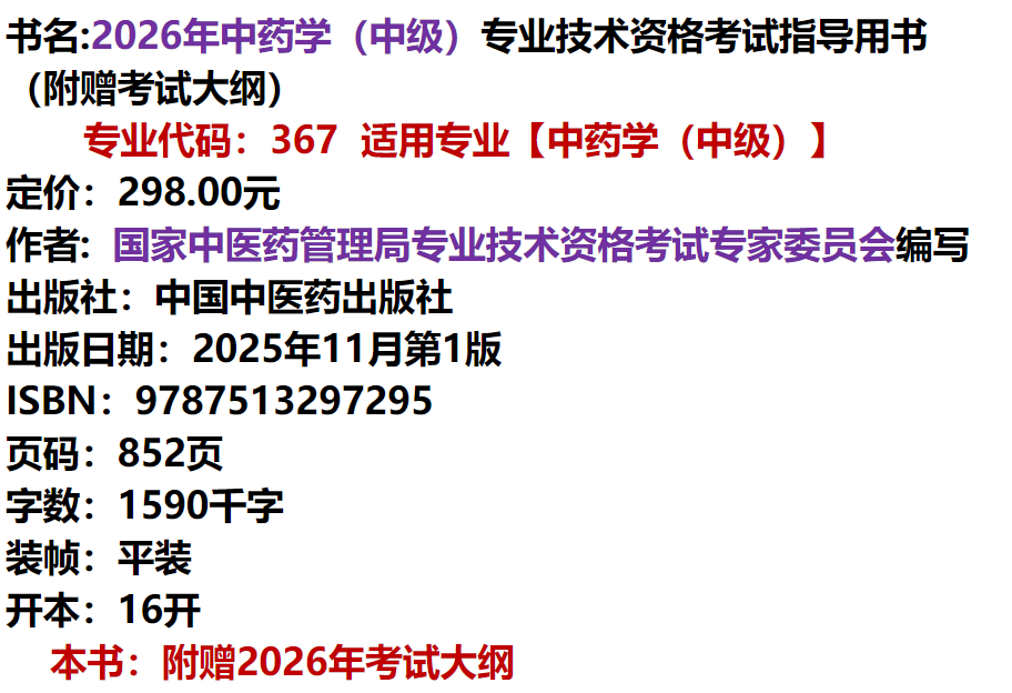 2026年中药学(中级)专业技术资格考试指导用书 代码367 国家中医药管理局专业技术资格考试专家委员会 中医药出版社中药专业中级