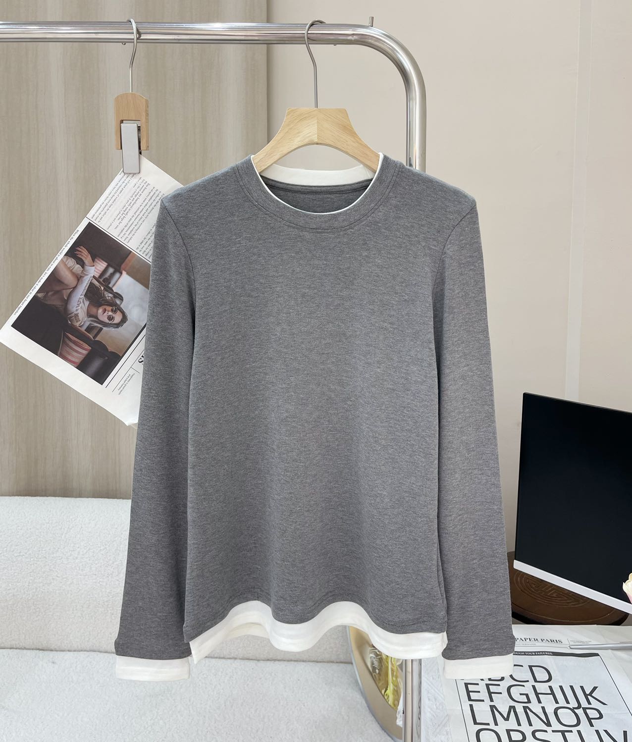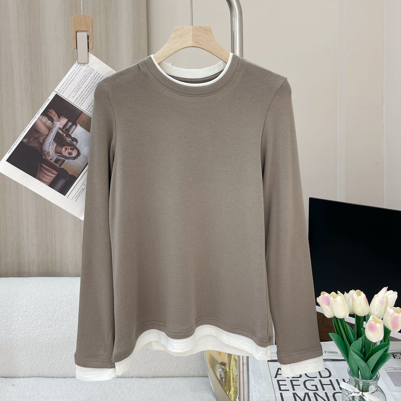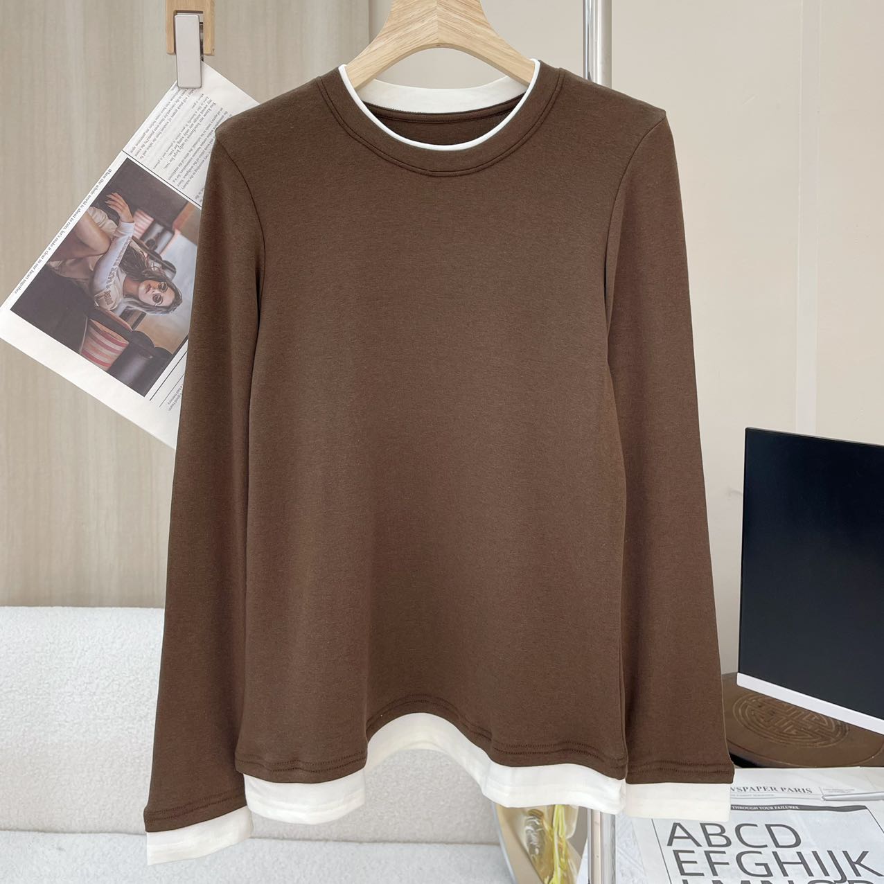 拼接撞色假两件设计,上身简约又高级,省去叠穿烦恼!