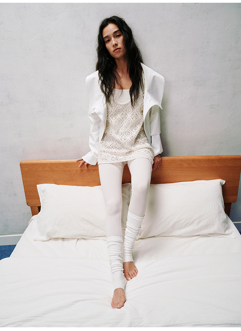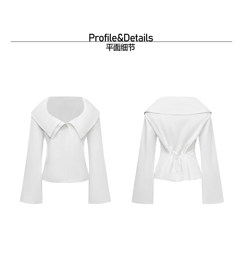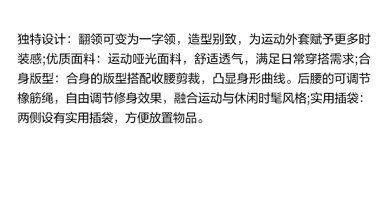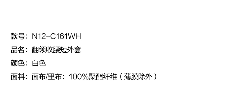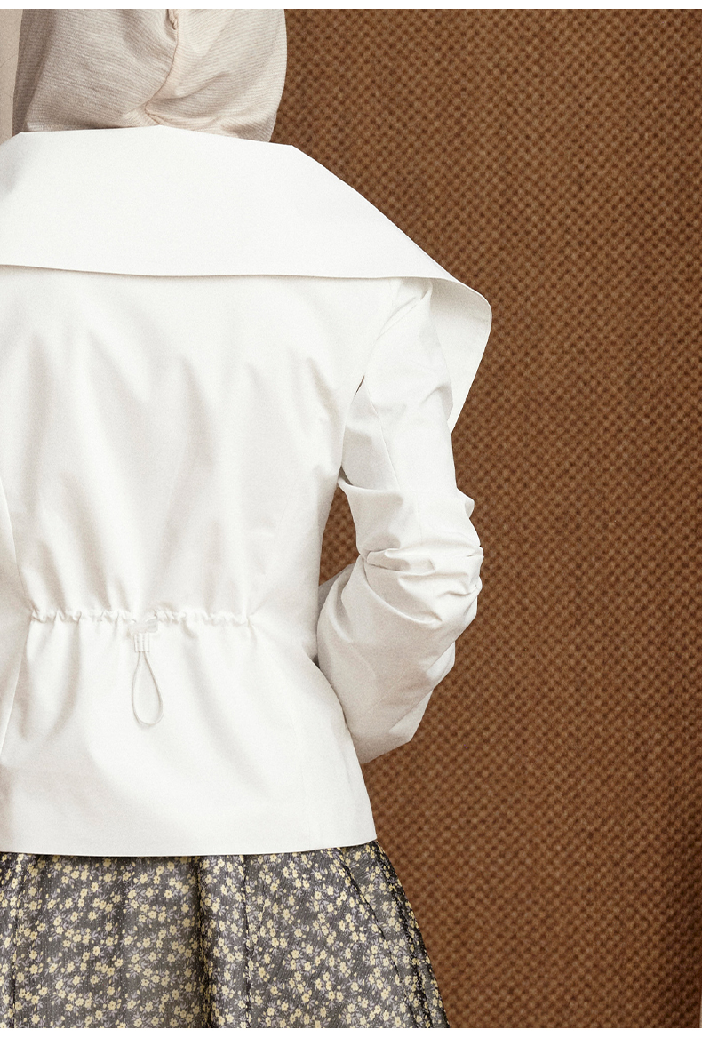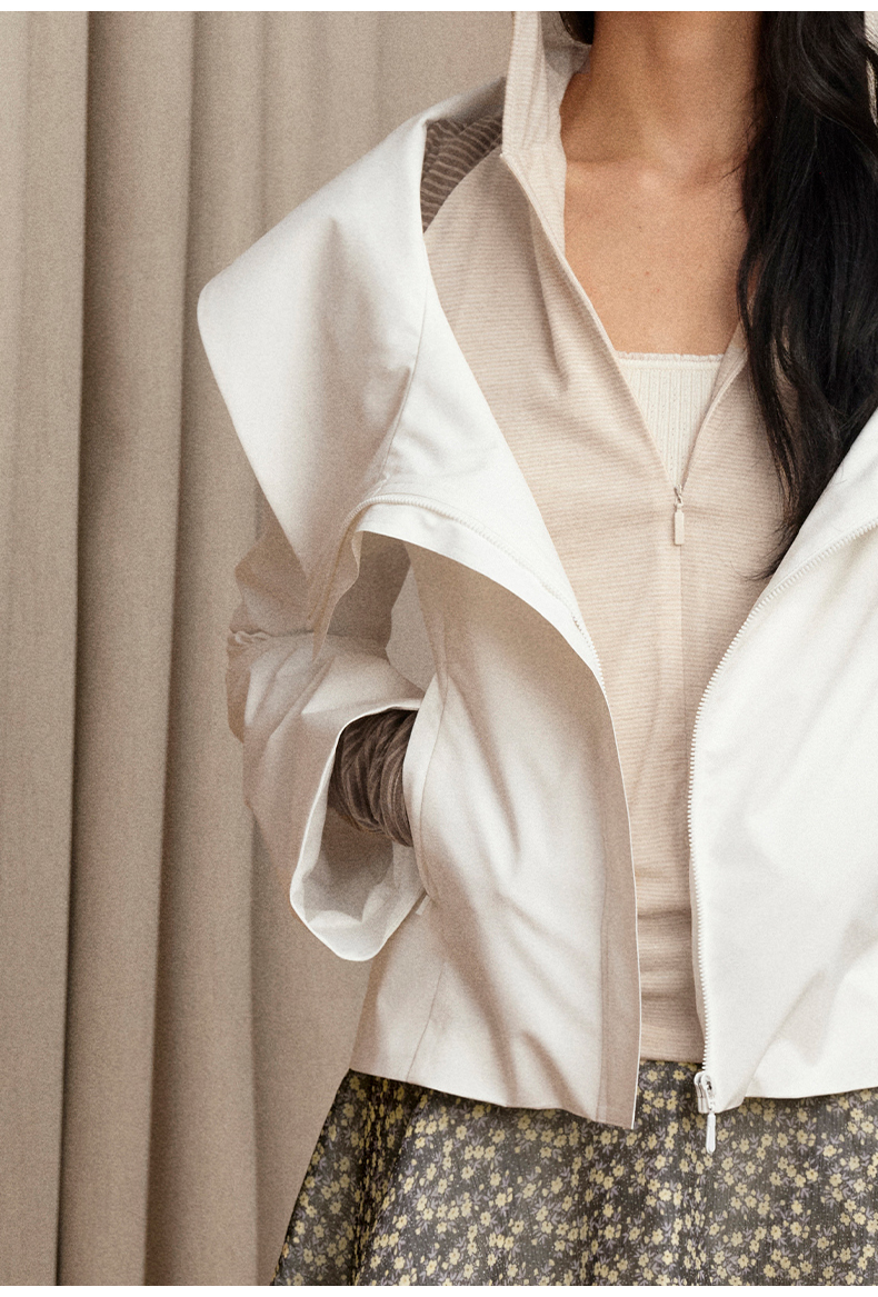 NUTH翻领收腰修身显瘦运动感短款拉链外套女 白色