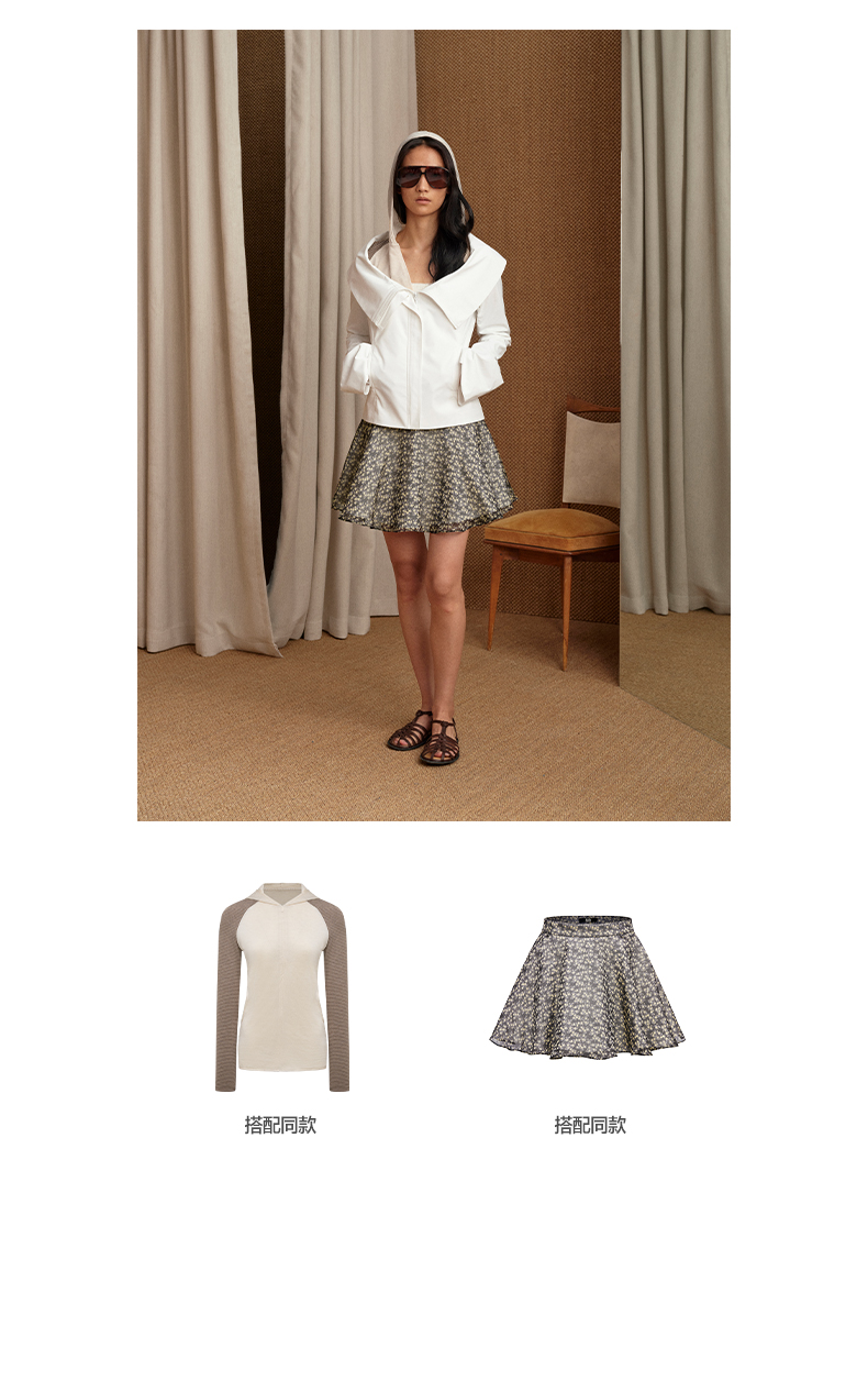 NUTH X 24ANS 联名系列 黑色设计感宽松皮衣外套/修身百搭短皮裙