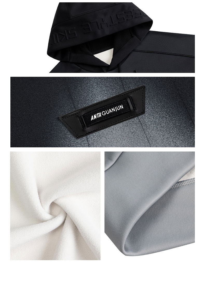 安踏冠军户外滑雪系列密暖绒连帽卫衣男女冬加绒套头衫172540703
