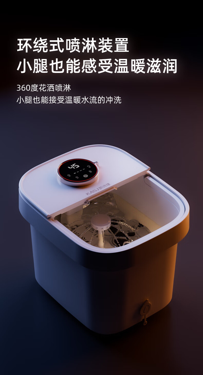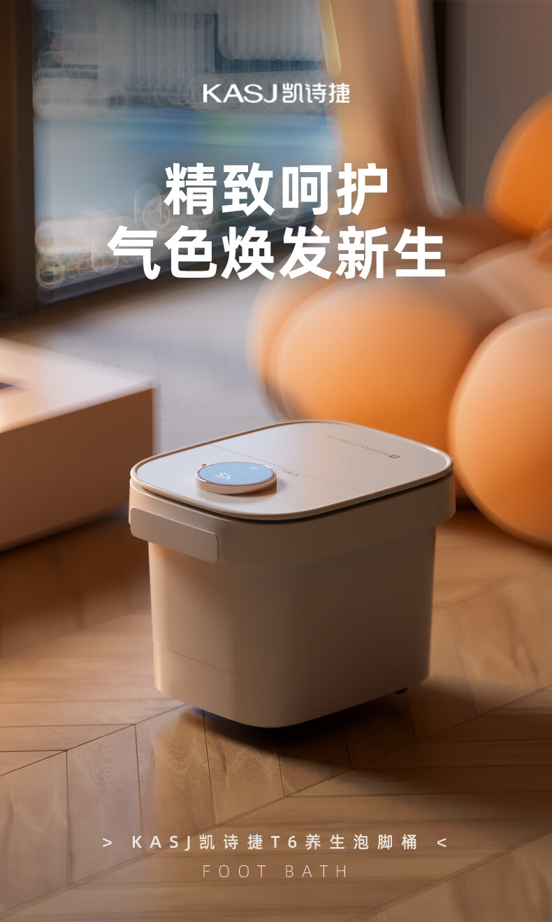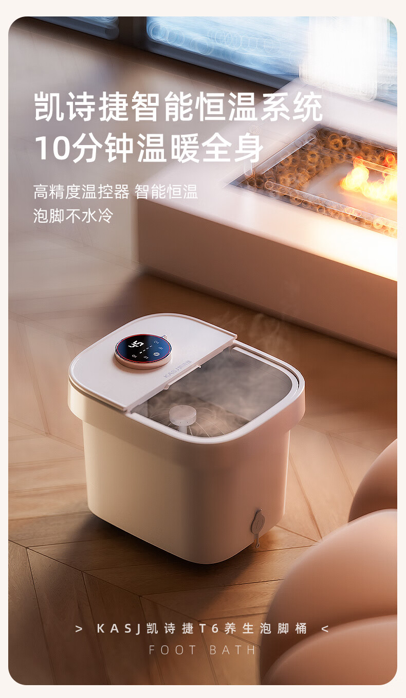 凯诗捷(KASJ)足浴盆自动按摩泡脚桶泡脚盆加热洗脚盆足疗盆送爸妈生日礼物 【T6旗舰款明月白】可拆卸按摩盘 心选到家