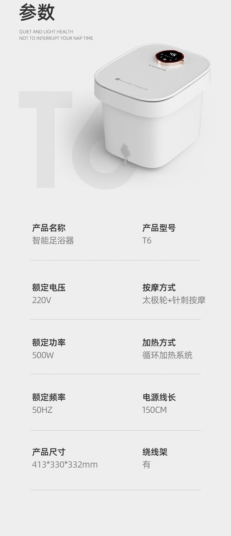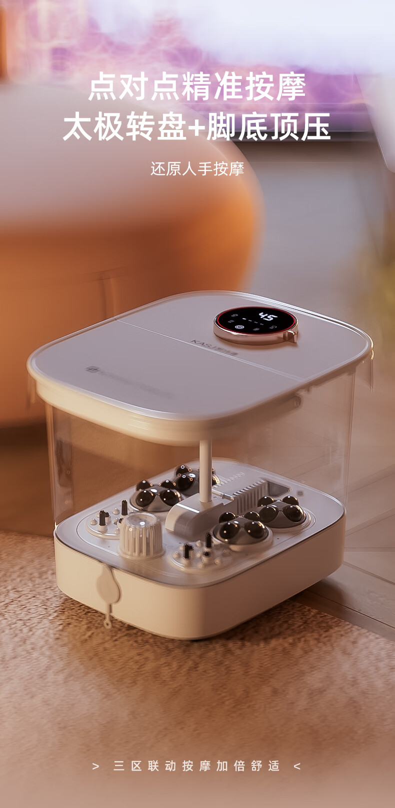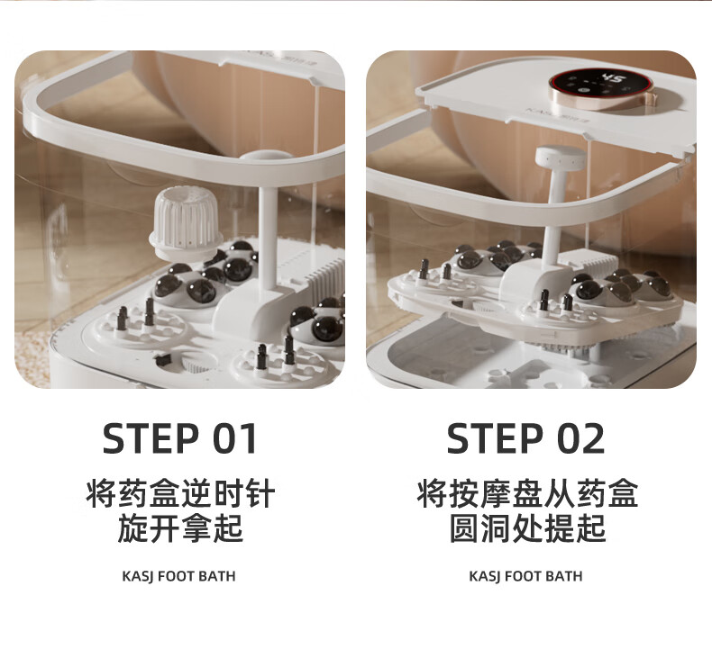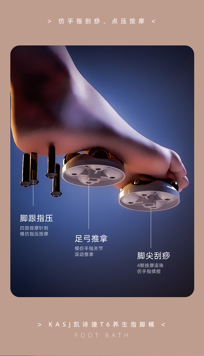 凯诗捷(KASJ)足浴盆自动按摩泡脚桶泡脚盆加热洗脚盆足疗盆送爸妈生日礼物 【T6旗舰款明月白】可拆卸按摩盘 心选到家