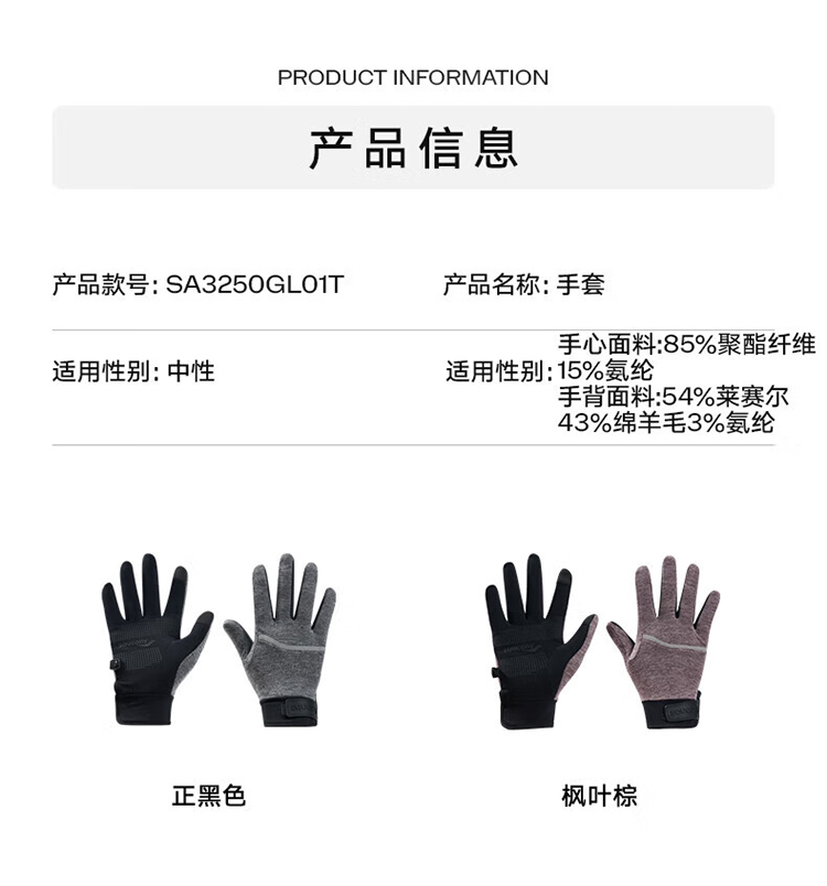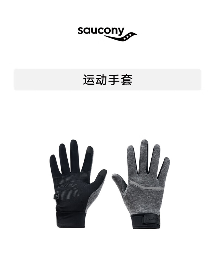 Saucony索康尼 男女同款手背羊毛面料魔术贴轻量保暖透气防滑针织运动手套