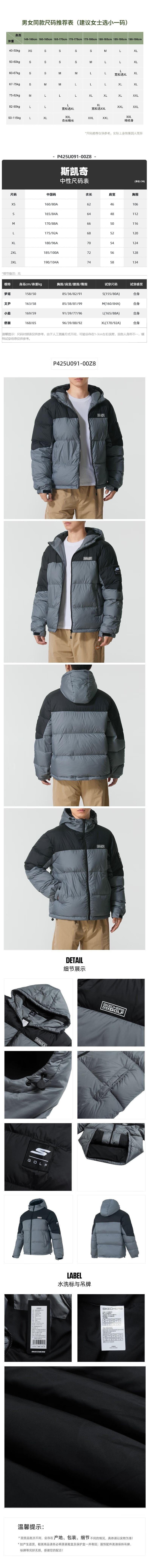 Skechers斯凯奇 通用羽绒服 P425U091-00Z8