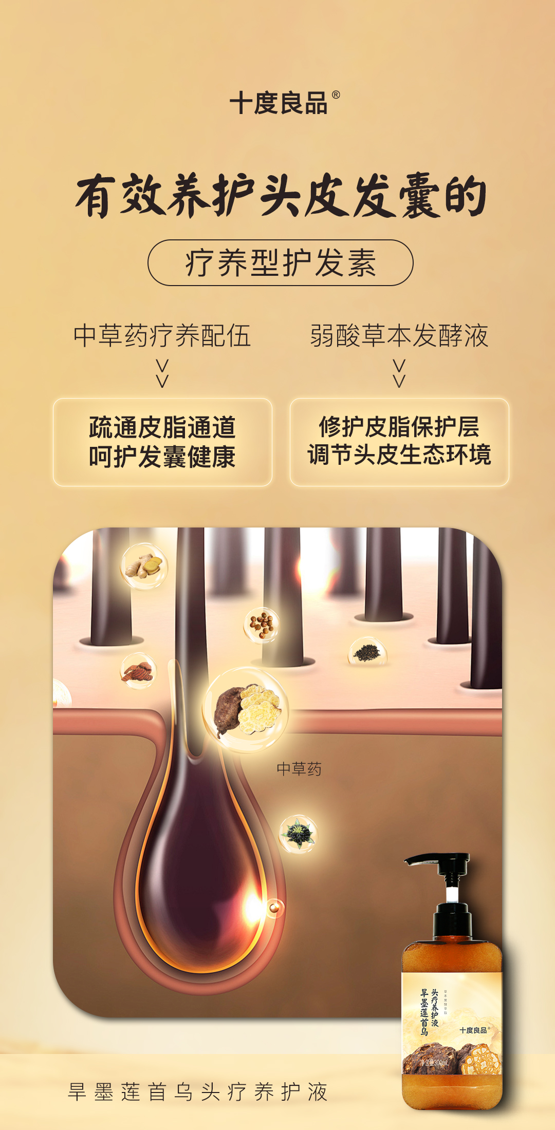 【十度良品】旱墨莲首乌头疗养护液 300ml/瓶