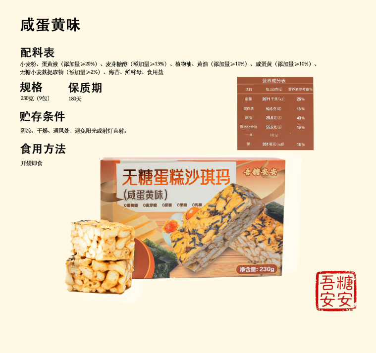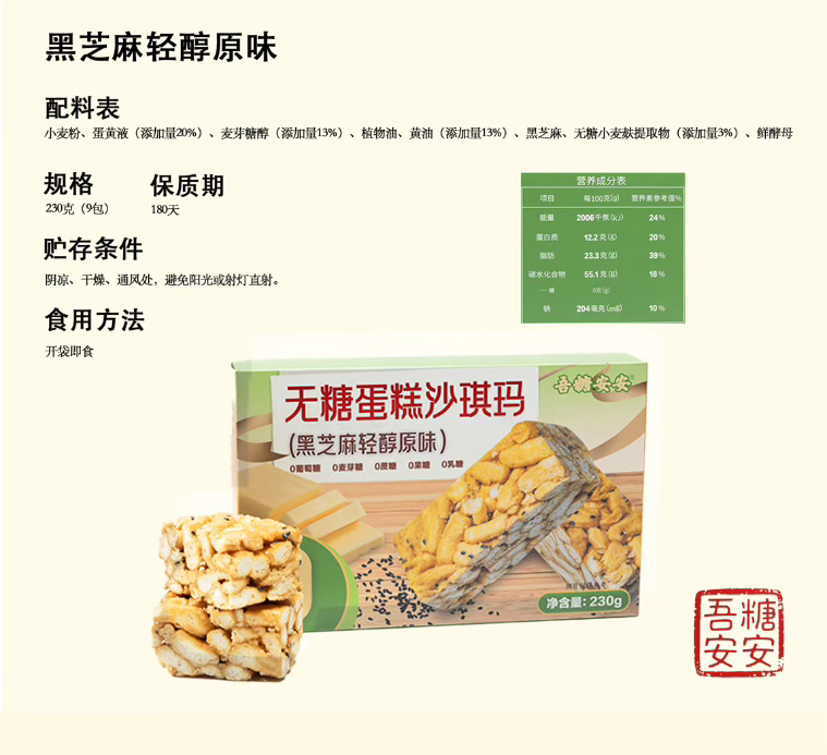 吾糖安安无糖蛋糕沙琪玛零食代餐多口味下午茶点心独立包装