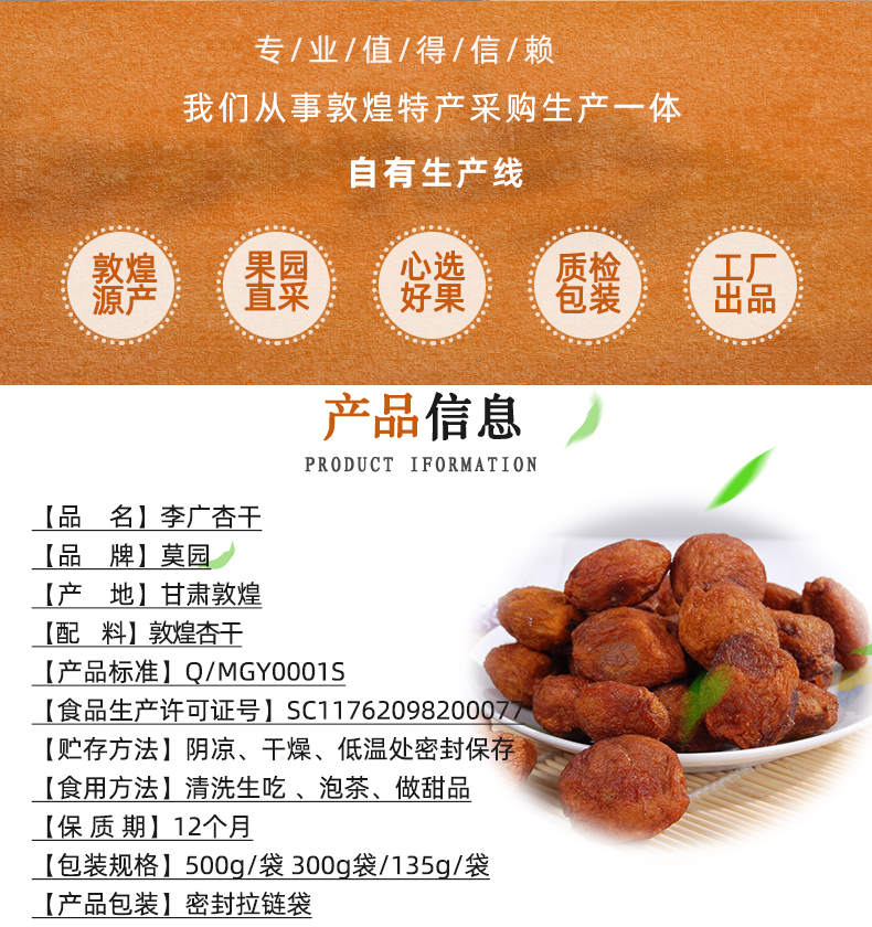 【李广杏干500g】敦煌特产李广杏500g袋装 新鲜杏子干果 可煮杏皮茶