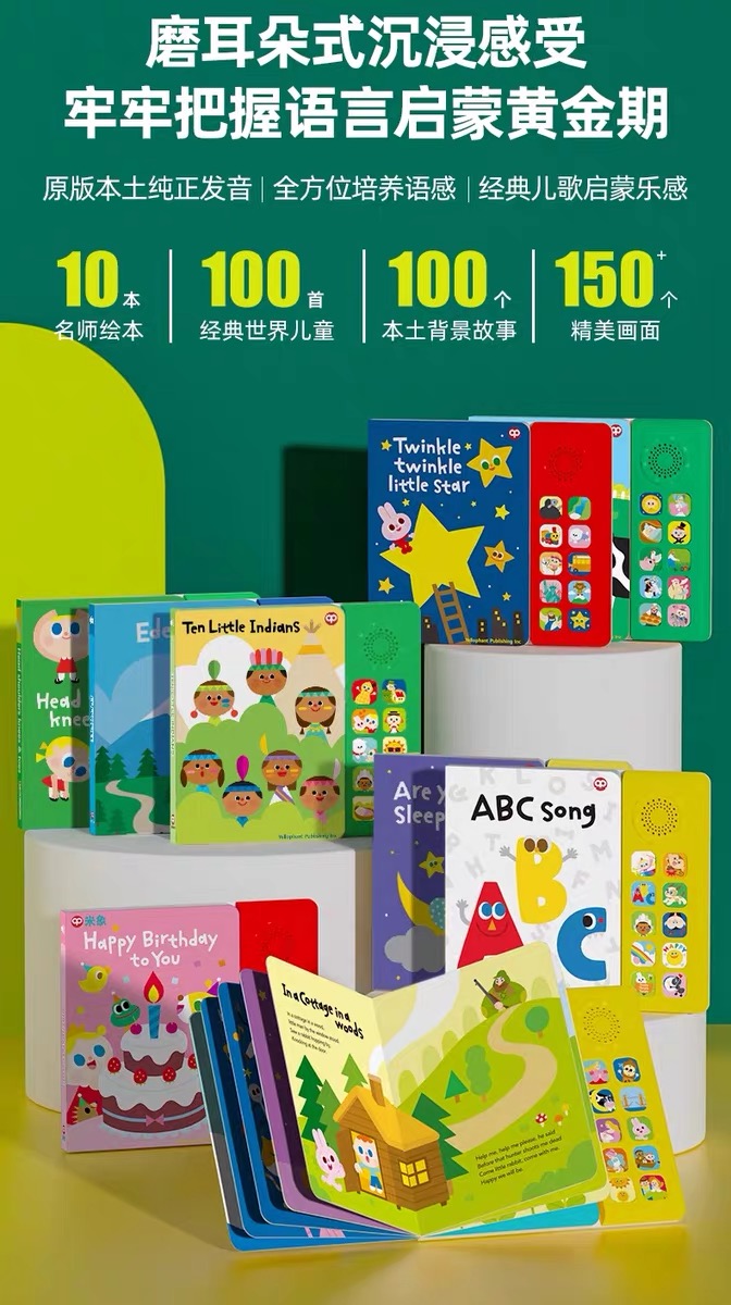 世界经典英文儿歌系列 下单赠:小萌芽英文绘本(+80个配套视频) sss英文儿歌发声书 ,出口品质的发声书。