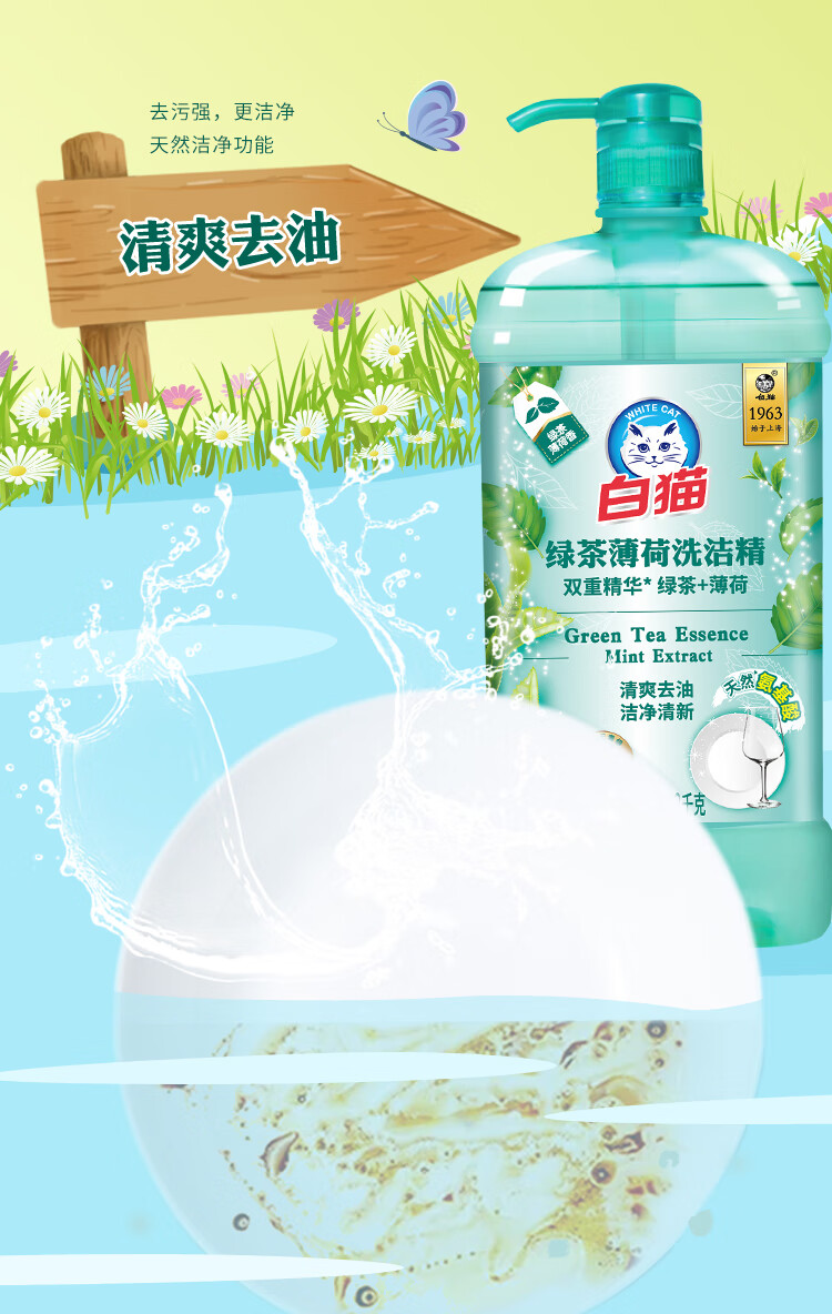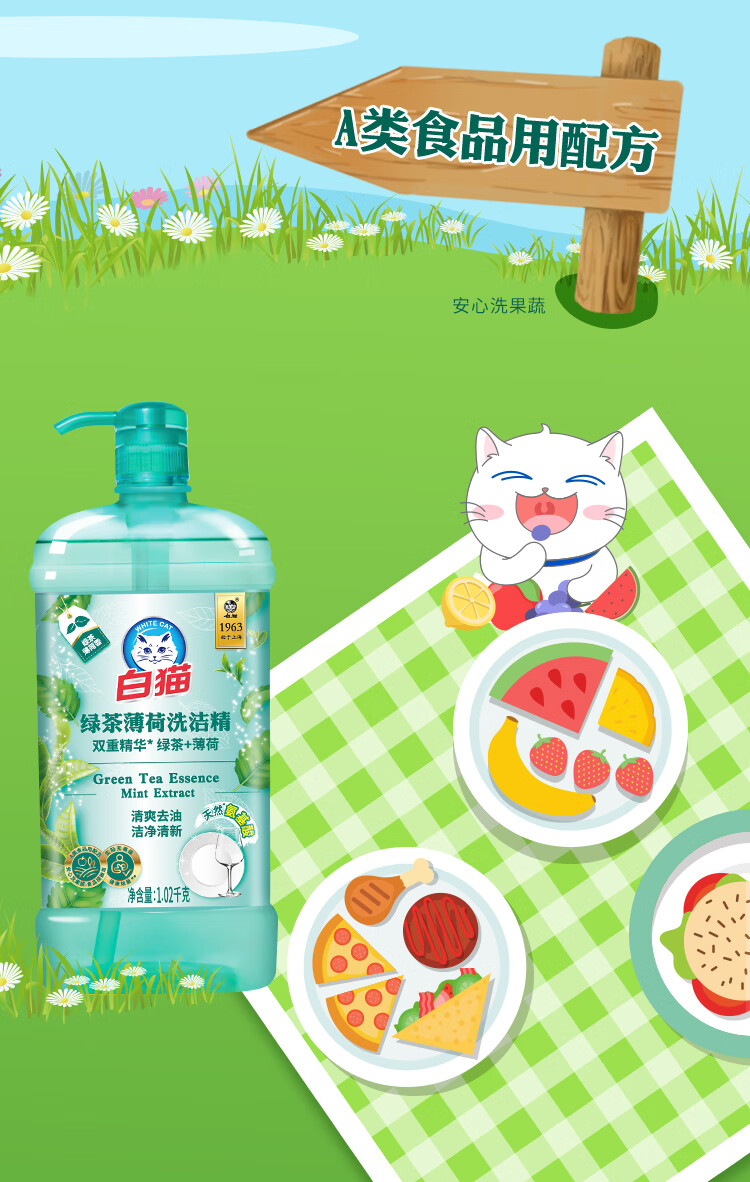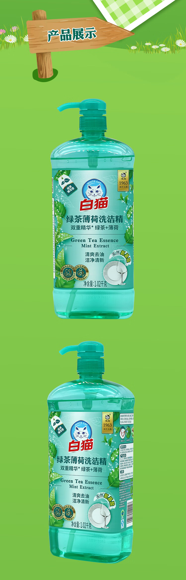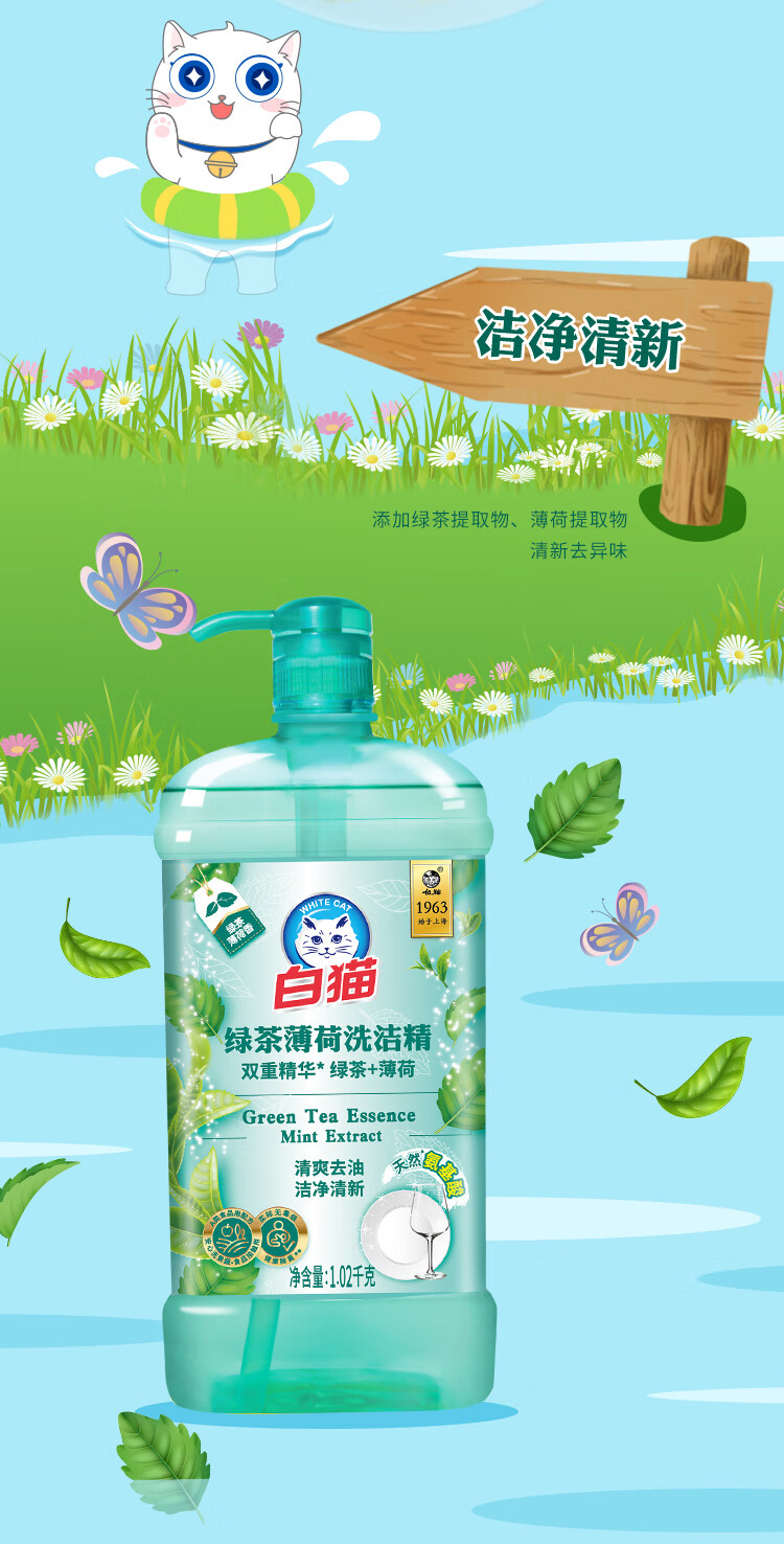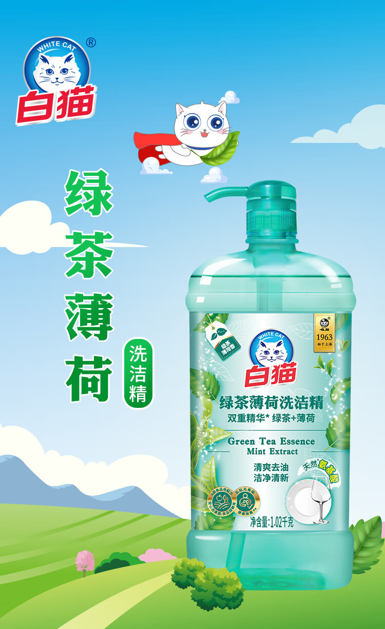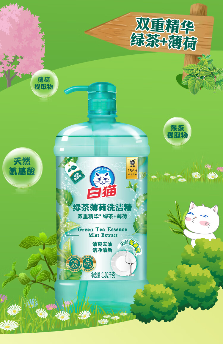 白猫 绿茶薄荷洗洁精 (茶系列)1.02kg