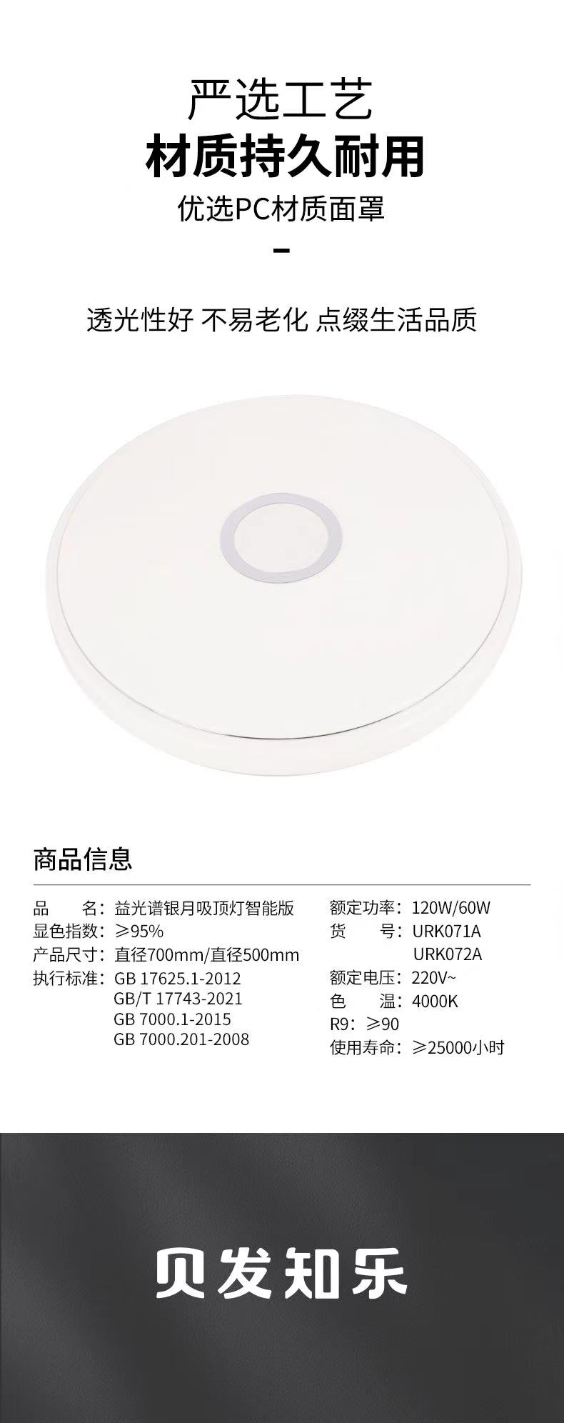 贝发知乐 益光谱银月吸顶灯智能版 科技护眼模拟自然阳光