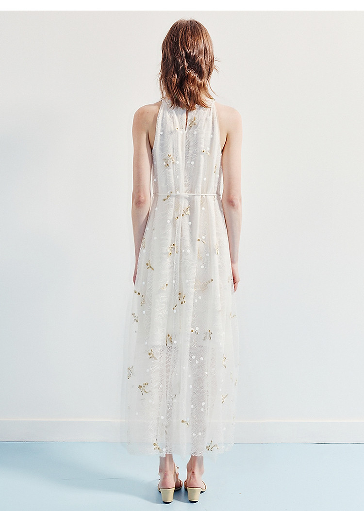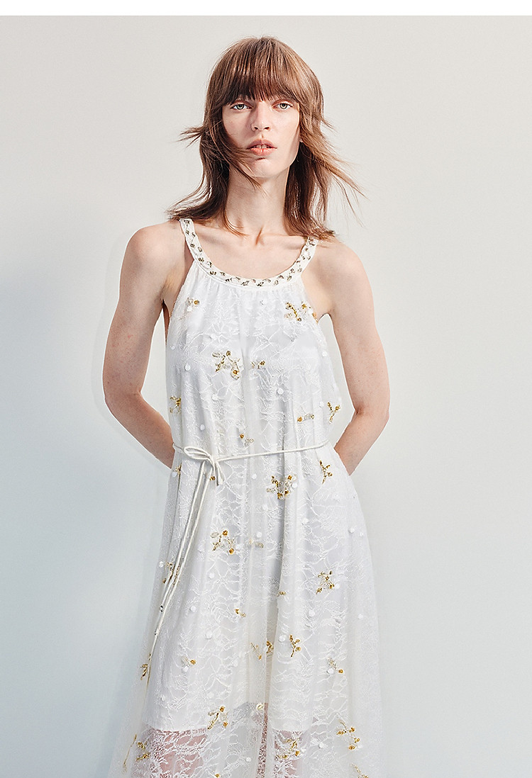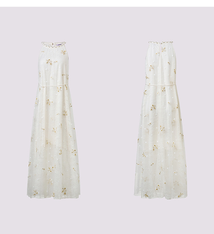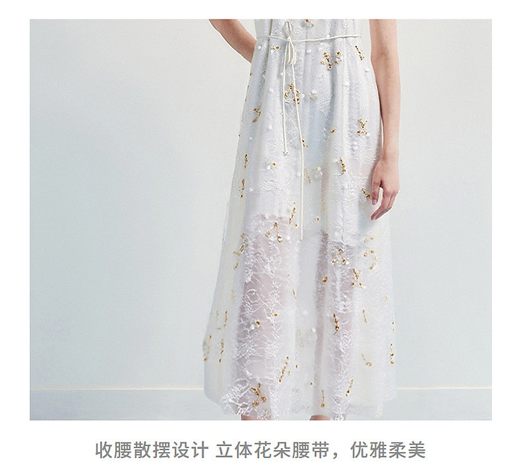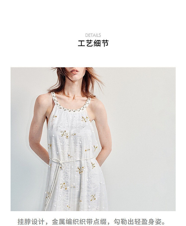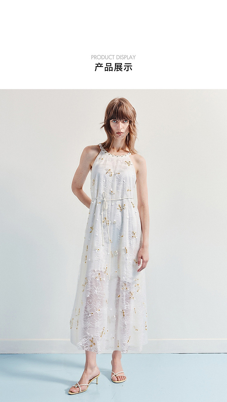 玛克门店发货:优雅度假风晕染蕾丝连衣裙25夏挂脖吊带收腰裙(货号:MF86DR015F3001)