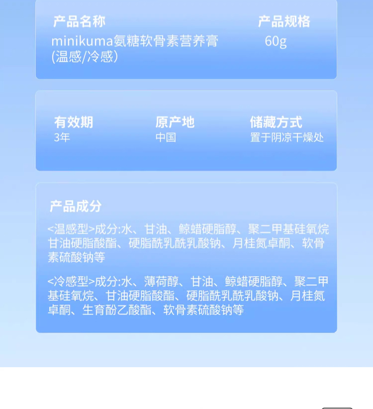 minikuma 温感型 氨糖软骨素营养膏 60g/支