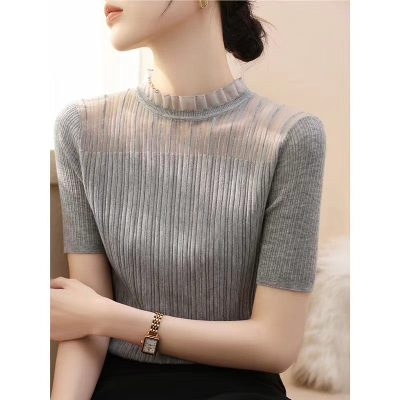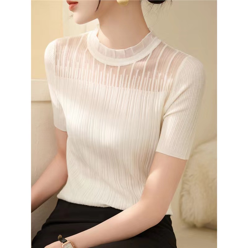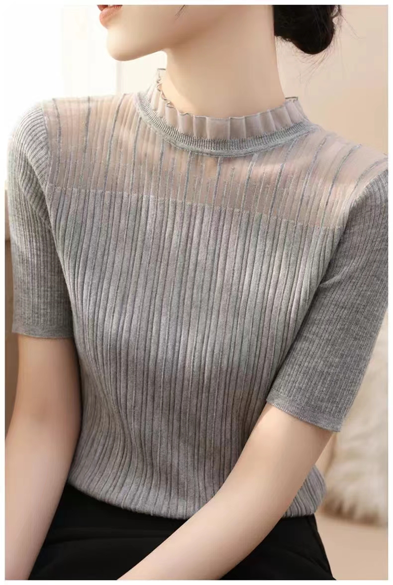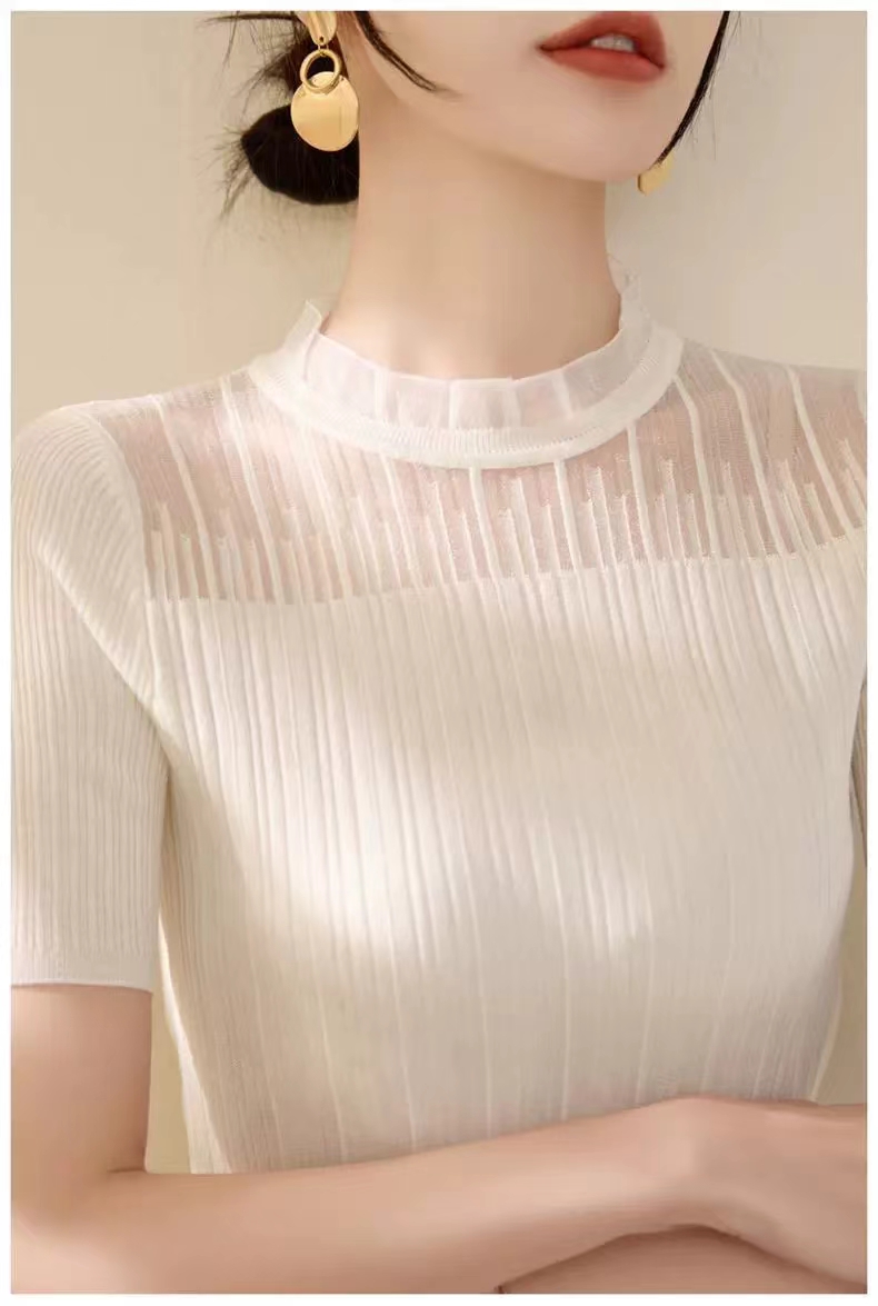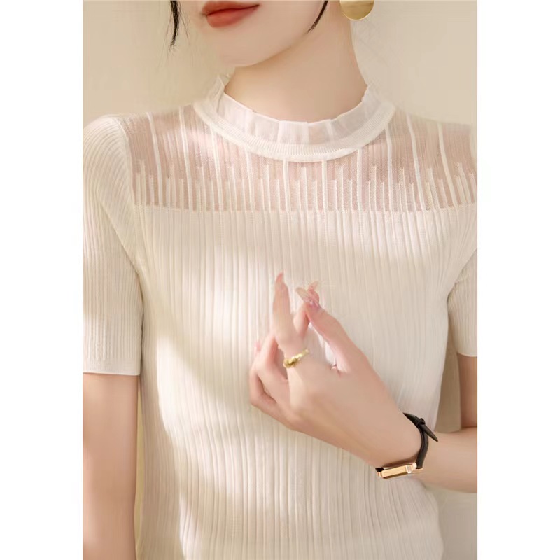 【小确幸】莱赛尔法式花边气质立领蕾丝针织上衣【81.6%莱赛尔18.4%锦纶】 H252090158