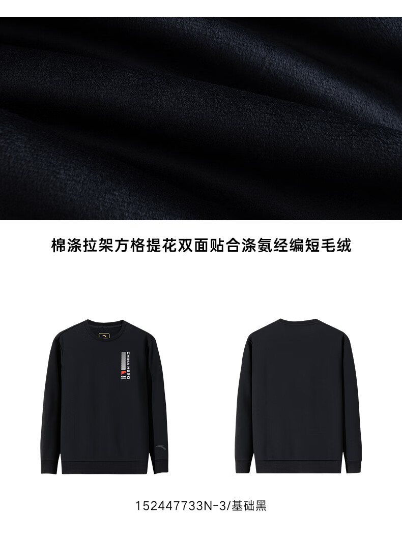 安踏套头卫衣男士秋冬新款加绒保暖健身跑步运动服上衣152447733N
