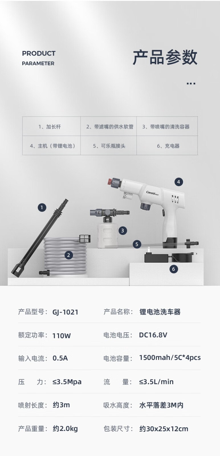 车管家 车载洗车器 锂电池大功率洗车器GJ-1021