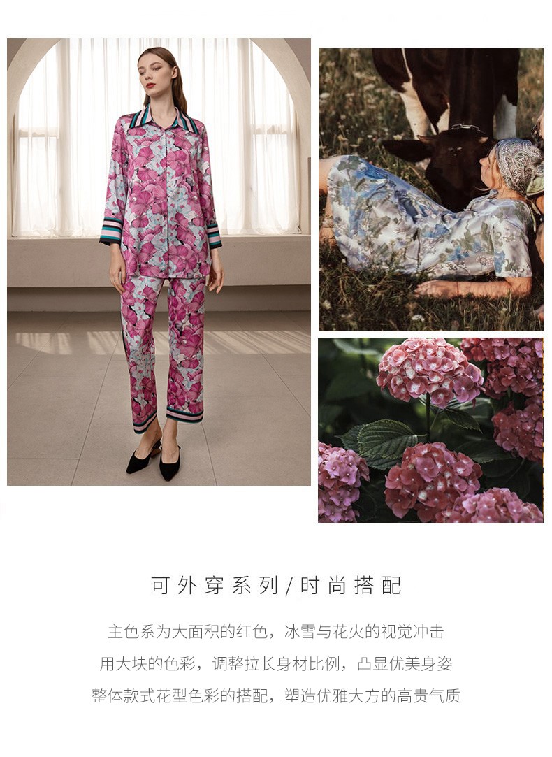 Solo seta22姆米真丝睡衣套装女印花款轻奢高级感四季款