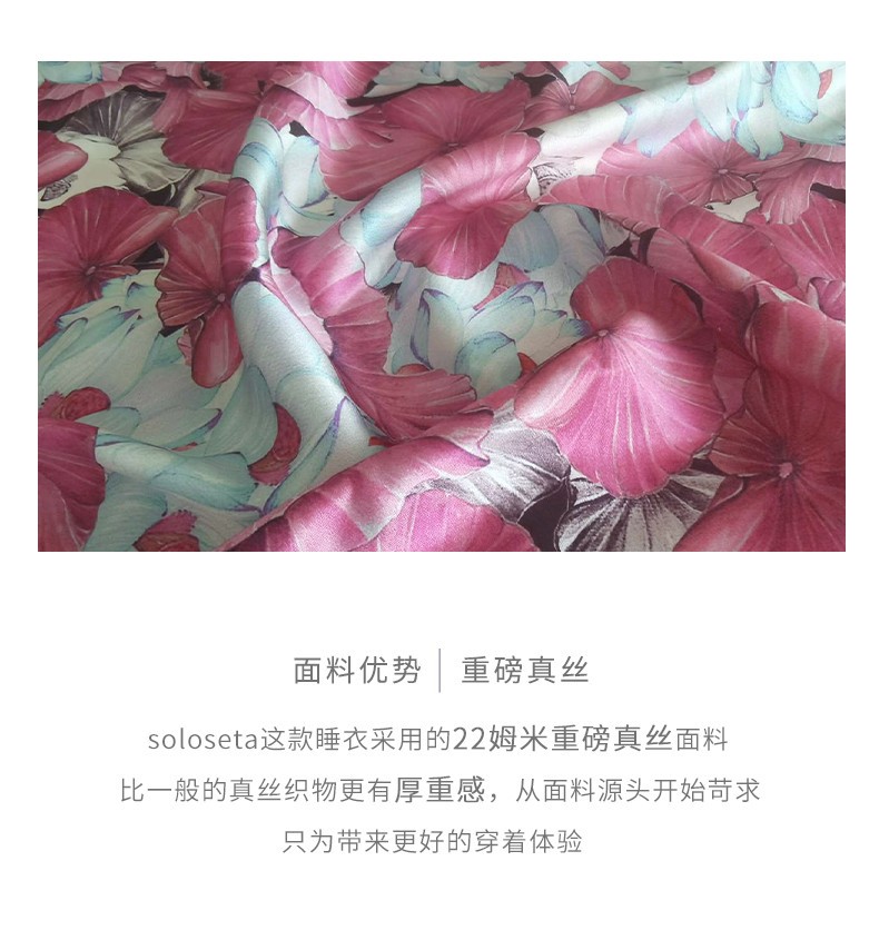 - soloseta专注于真丝织物,灵感源自意大利语,中文含义为“只做真丝”的意思。让睡衣变时尚,居家和外出瞬间切换,使其更具有出街,度假,参加宴会等功能。