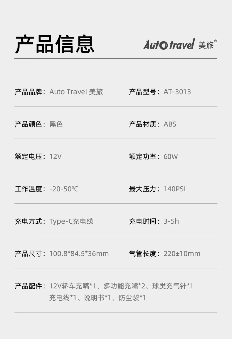 Auto Travel美旅 无线车载充气泵 AT-3013