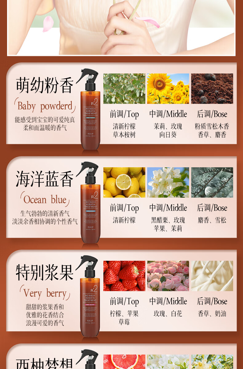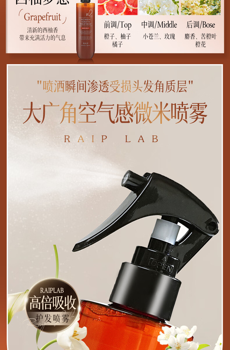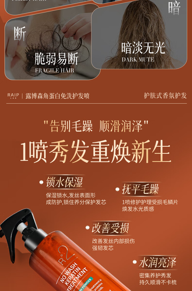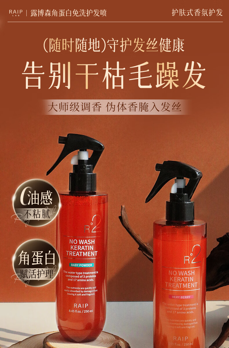 RAIPLAB露博森 角蛋白精华免洗香氛护发素受损干枯头发护理顺滑护发喷雾 250ml/瓶
