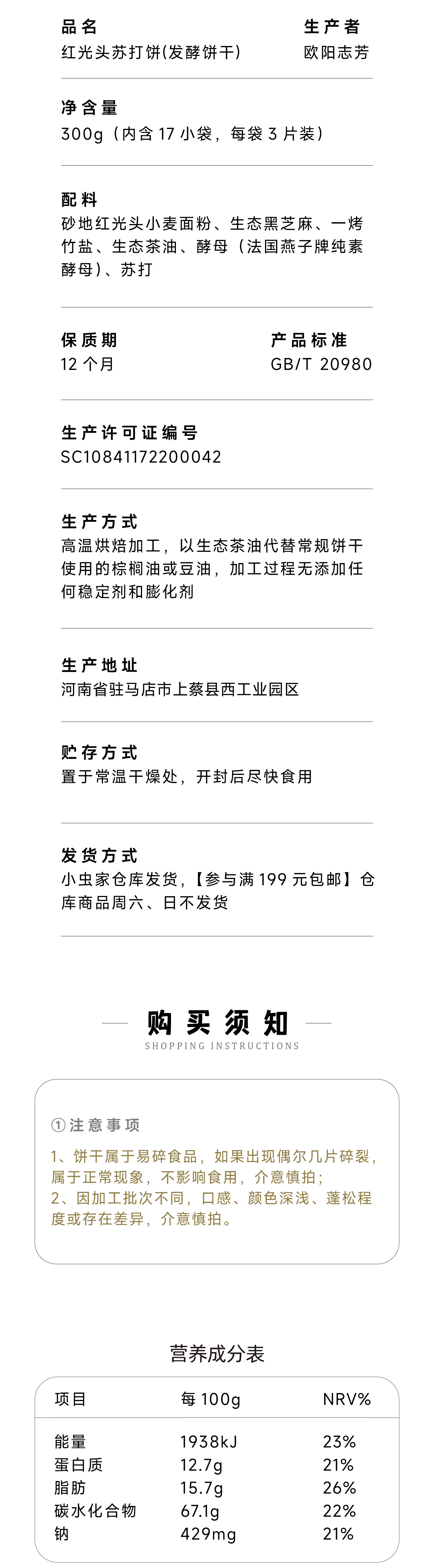 红光头苏打饼干 300g/盒 17小袋(每小袋3片) I 来自河南驻马店,生产者:欧阳志芳 &【公平贸易农人定价】