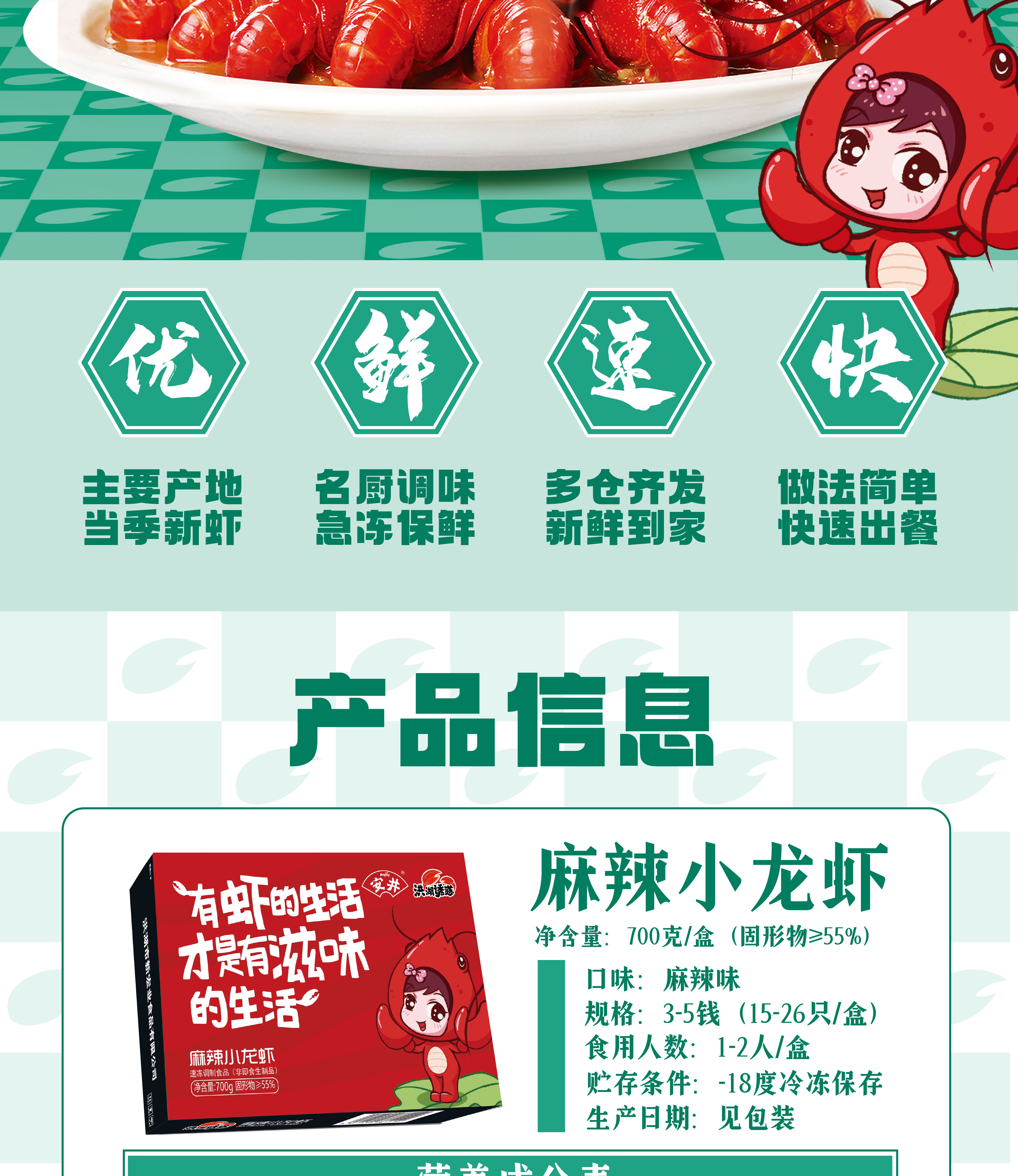 优选丨【2025年新虾】安井3-5钱调味小龙虾700g 4盒口味麻辣蒜蓉