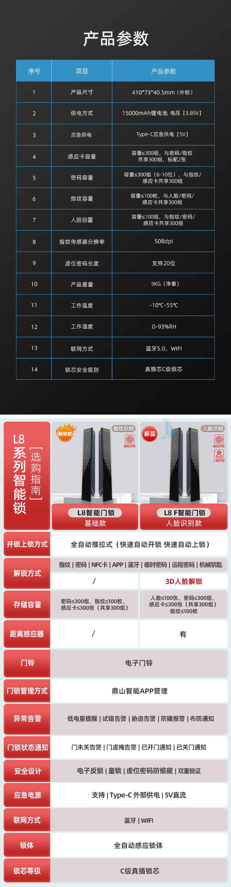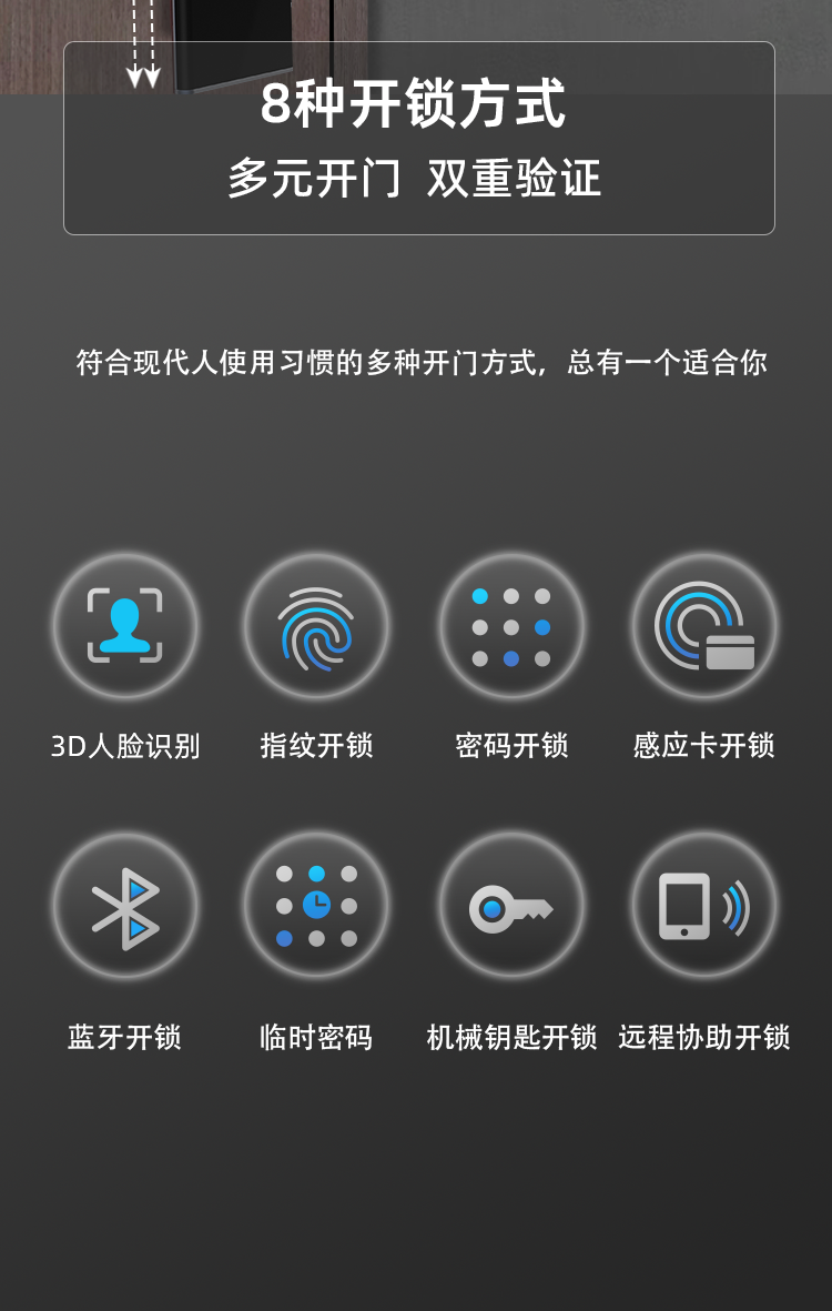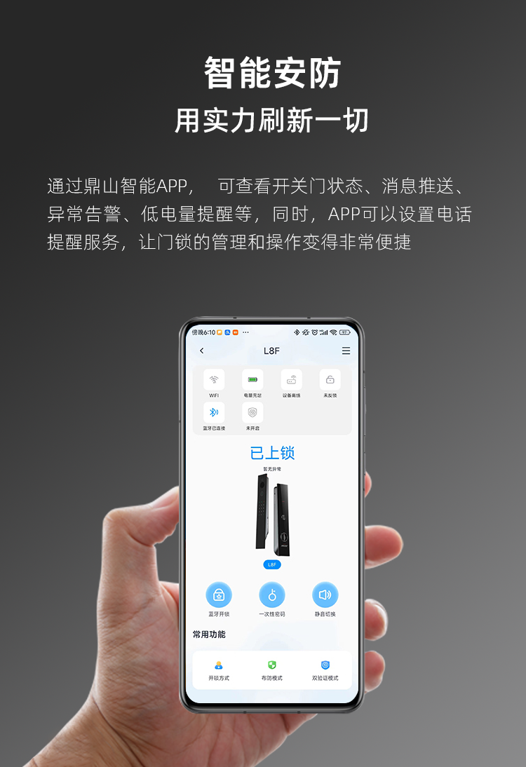 鼎山科技(DINSTECH) L8F 3D人脸识别智能门锁家用大门密码锁 办公室电子锁房门防盗门指纹锁 6色可选