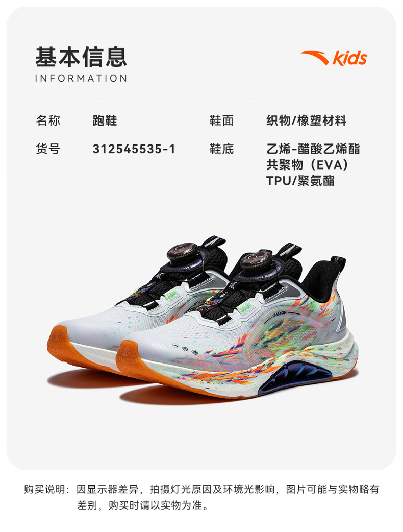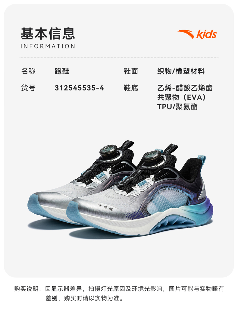 安踏儿童男大童跑鞋2025秋冬新款舒适防滑耐磨中大童日常跑旋钮鞋312545535