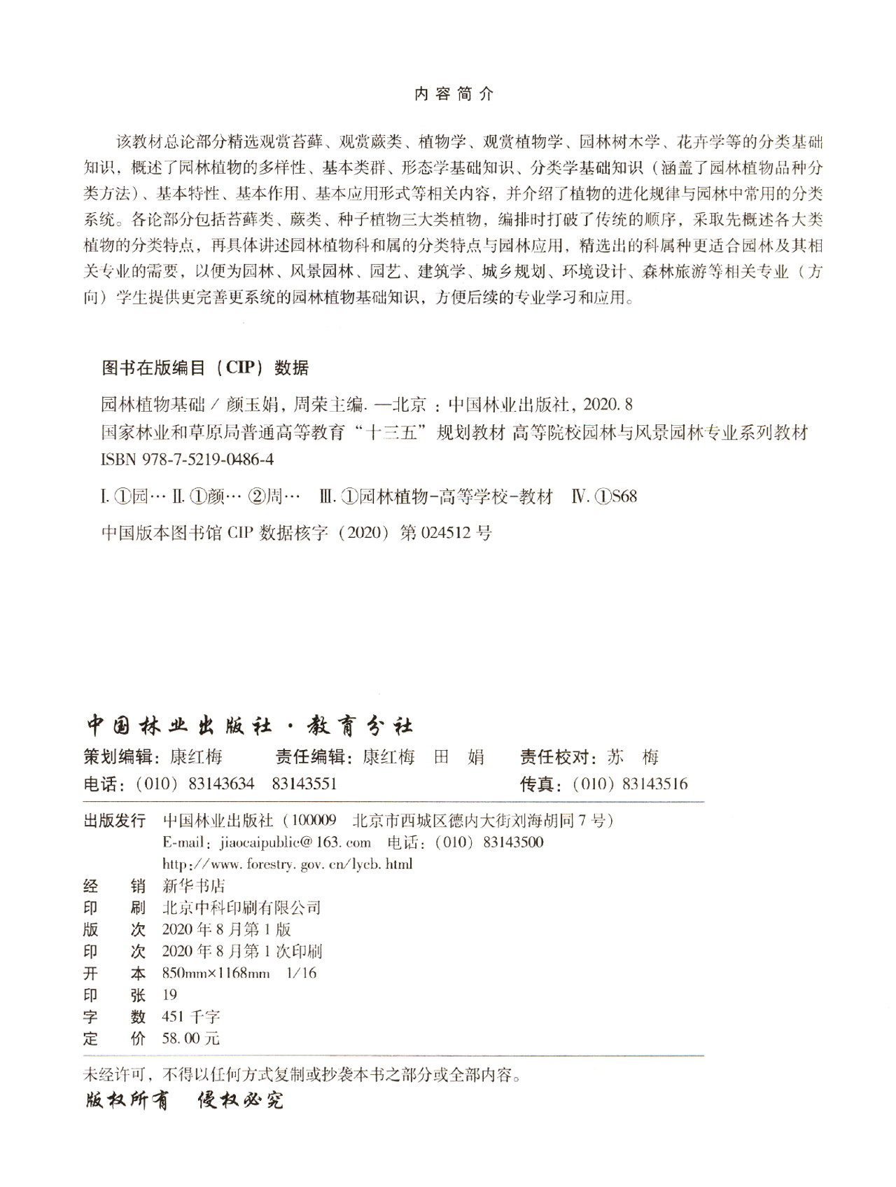 园林植物基础 颜玉娟 周荣 (高等院校园林与风景园林专业系列教材)观赏苔藓 观赏蕨类 园林树木学、花卉学 0486 中国林业出版社