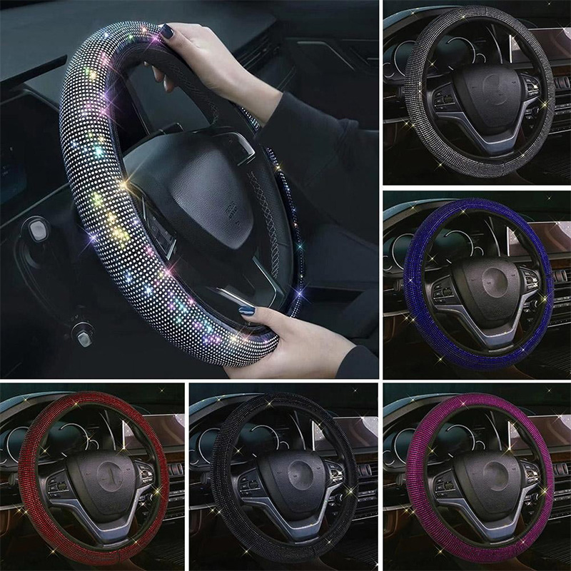 欧美品牌 水晶闪亮水钻汽车方向盘保护套 通用贴合 直径37/38厘米适用汽车SUV