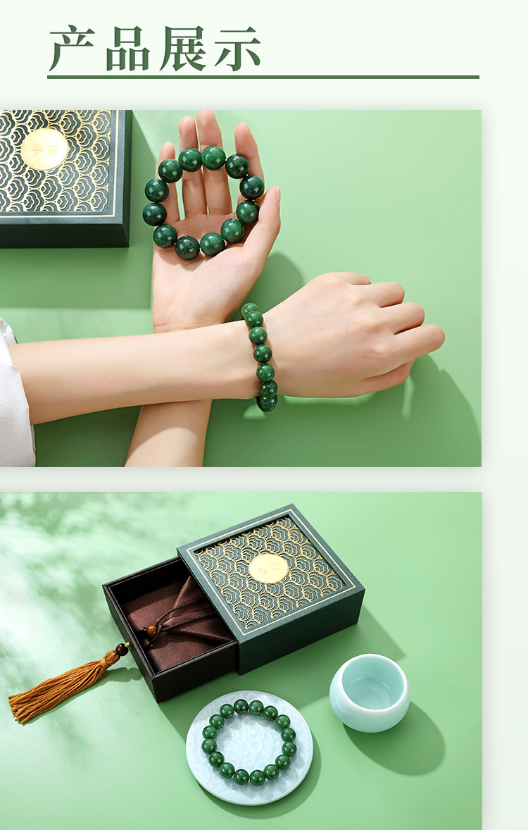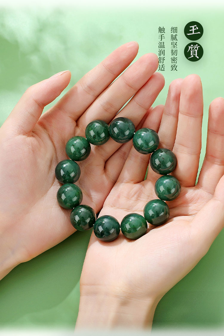 和田碧玉圆珠手串 , 玉石雕刻大师杨大钊老师创作,联合明孝陵博物馆