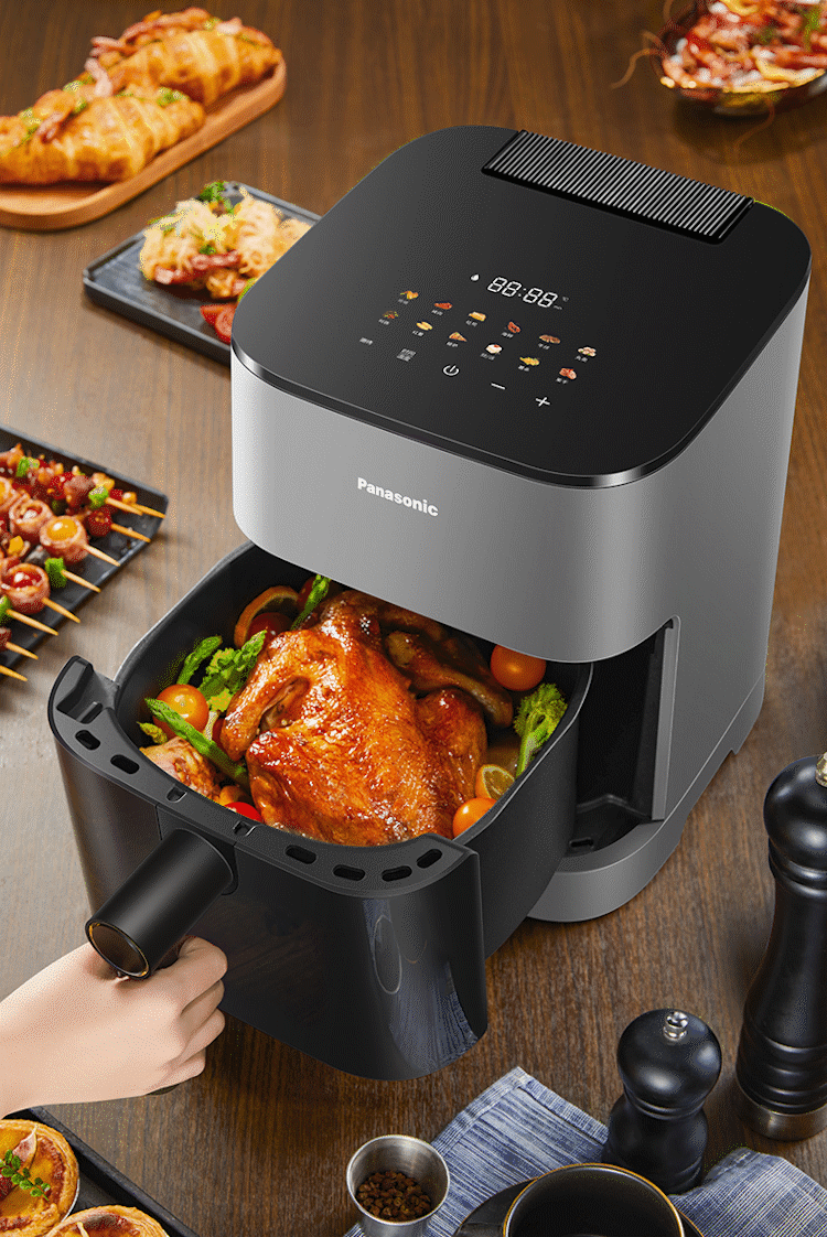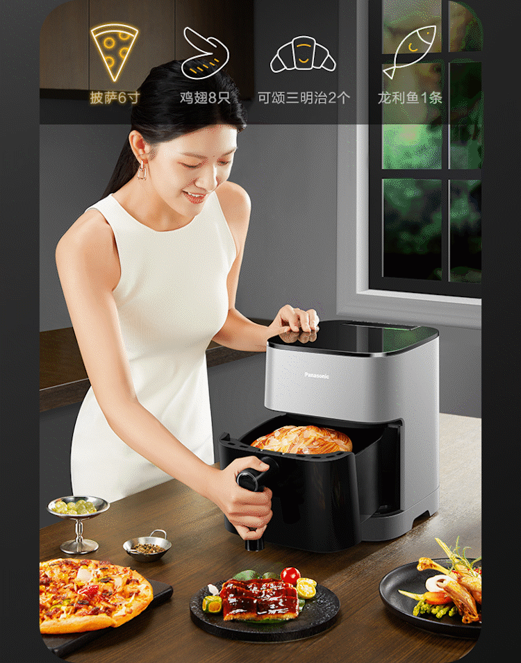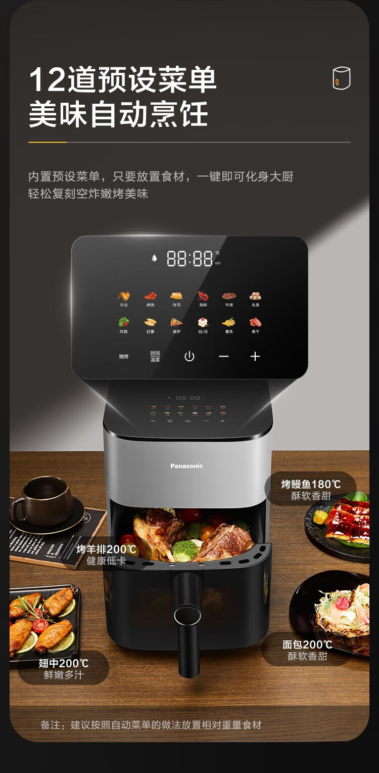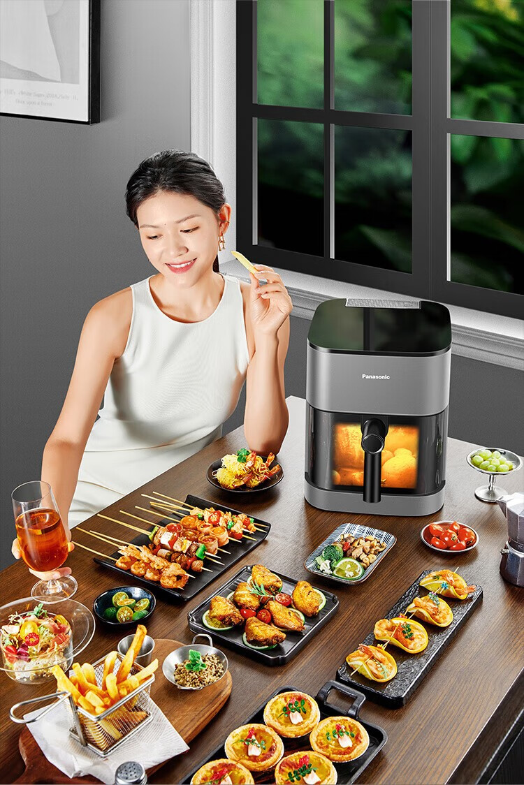 松下(Panasonic)空气炸锅5L大容量无油多功能家用透明可视低脂电炸锅煎炸锅全自动 NF-HC500-S