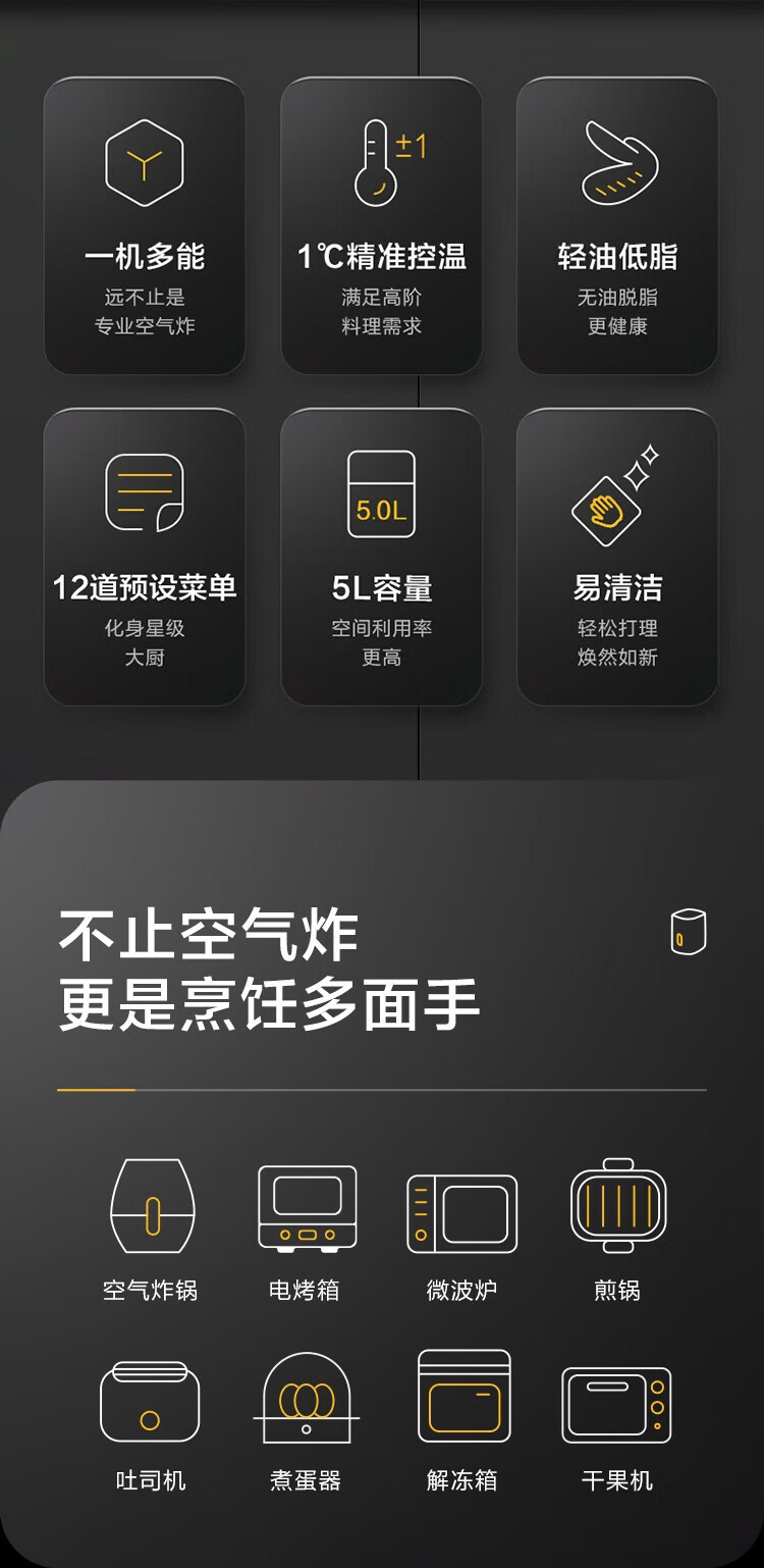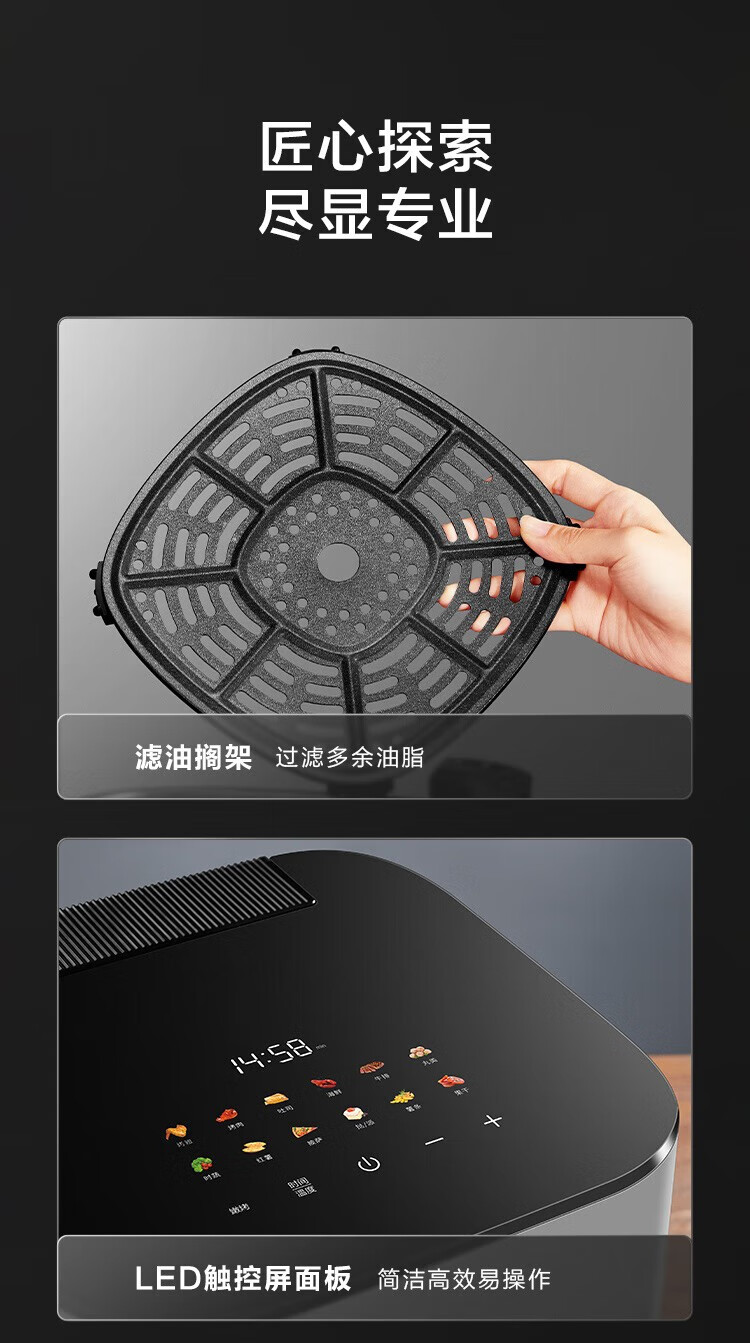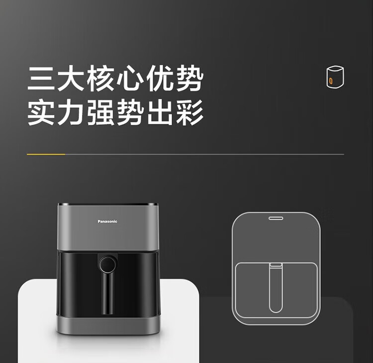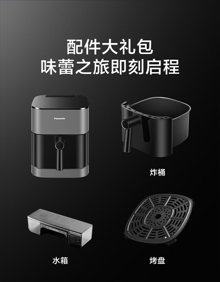 松下(Panasonic)空气炸锅5L大容量无油多功能家用透明可视低脂电炸锅煎炸锅全自动 NF-HC500-S