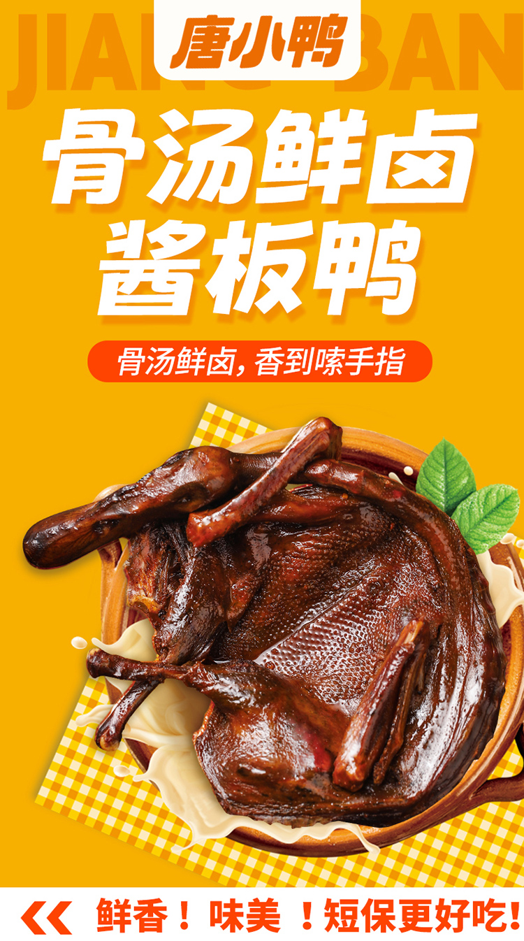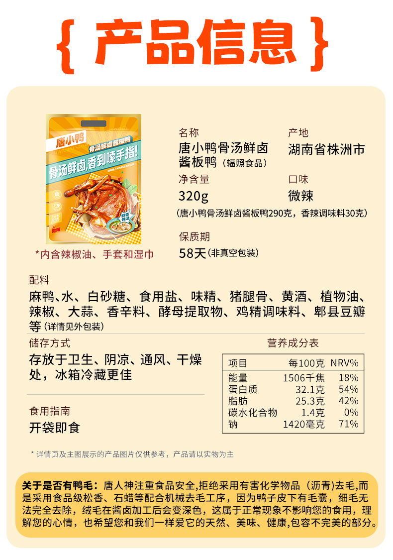 唐人神唐小鸭骨汤鲜卤酱板鸭320g卤鸭鲜香骨汤熬制风味微辣手撕鸭