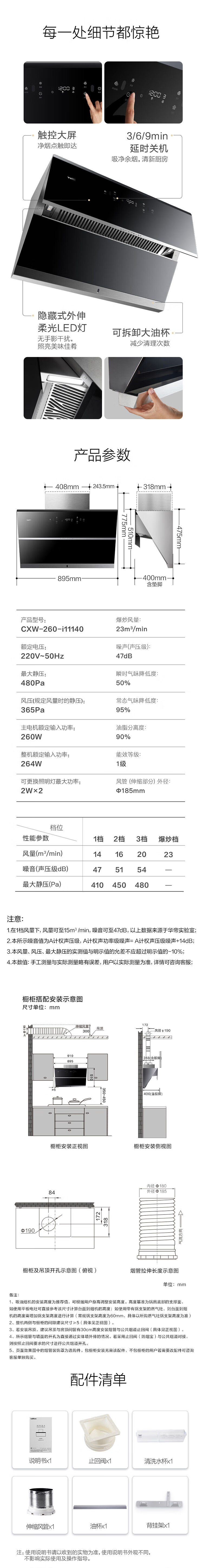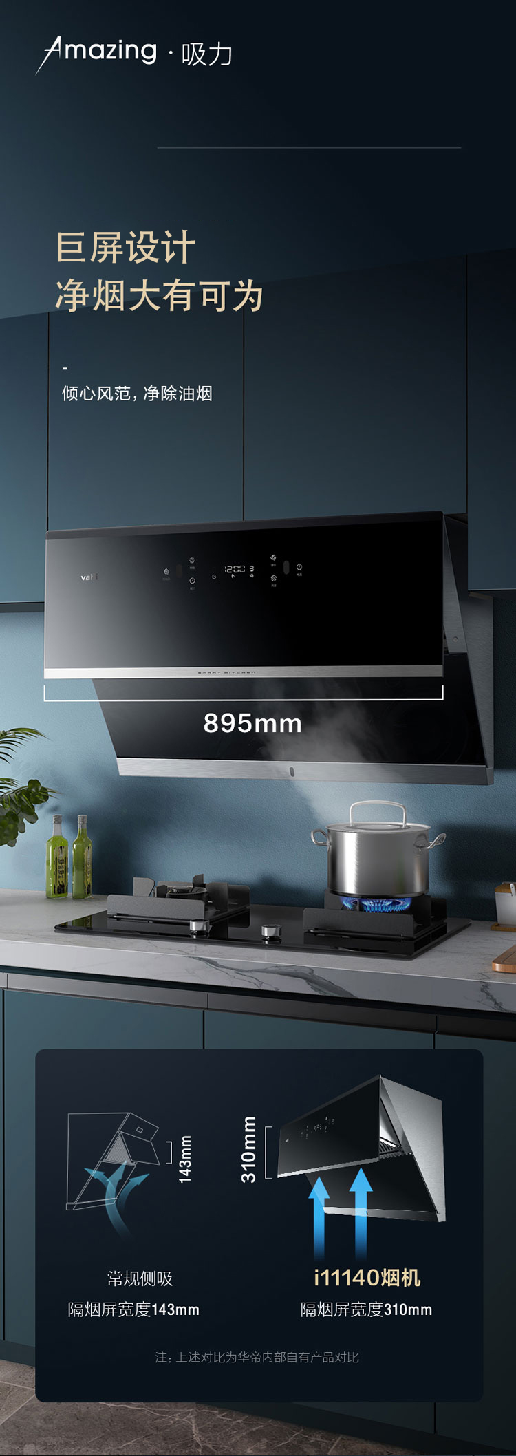 华帝(VATTI)抽油烟机 家用侧吸式吸油烟机 23风量大吸力 垂直拢吸 挥手智控 一键自动清洗排油烟机 i11140