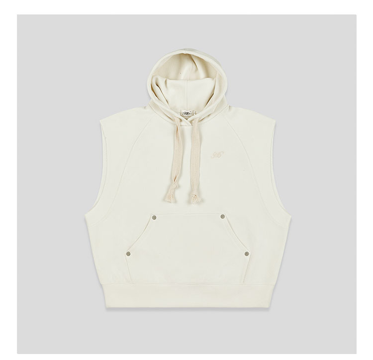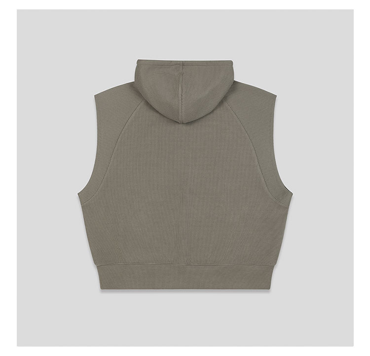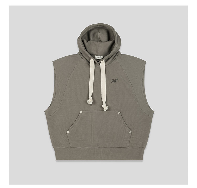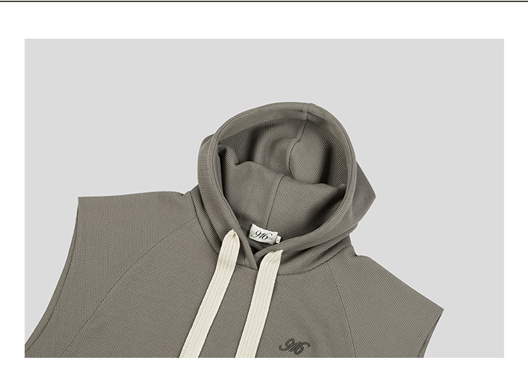 GOODBAI 916 logo刺绣插肩连帽无袖华夫格卫衣