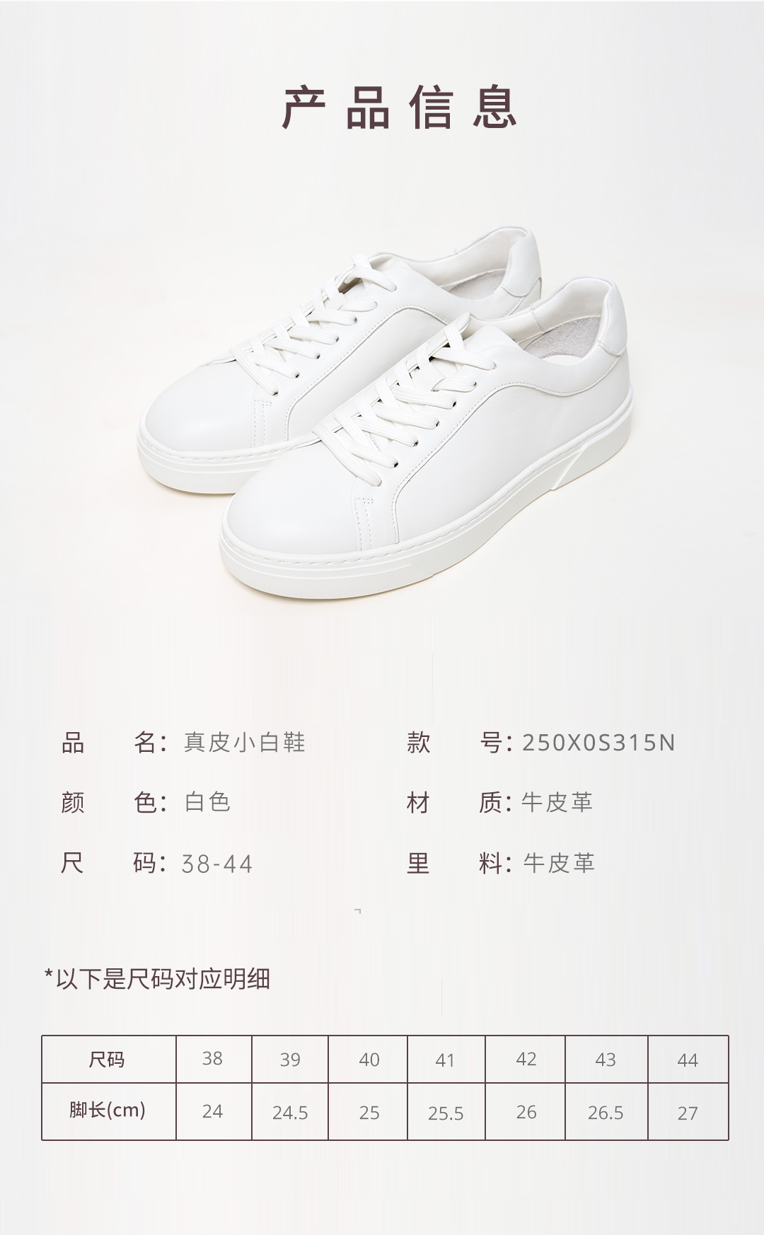 【总裁休闲】进口小牛皮小白鞋250X0S315N