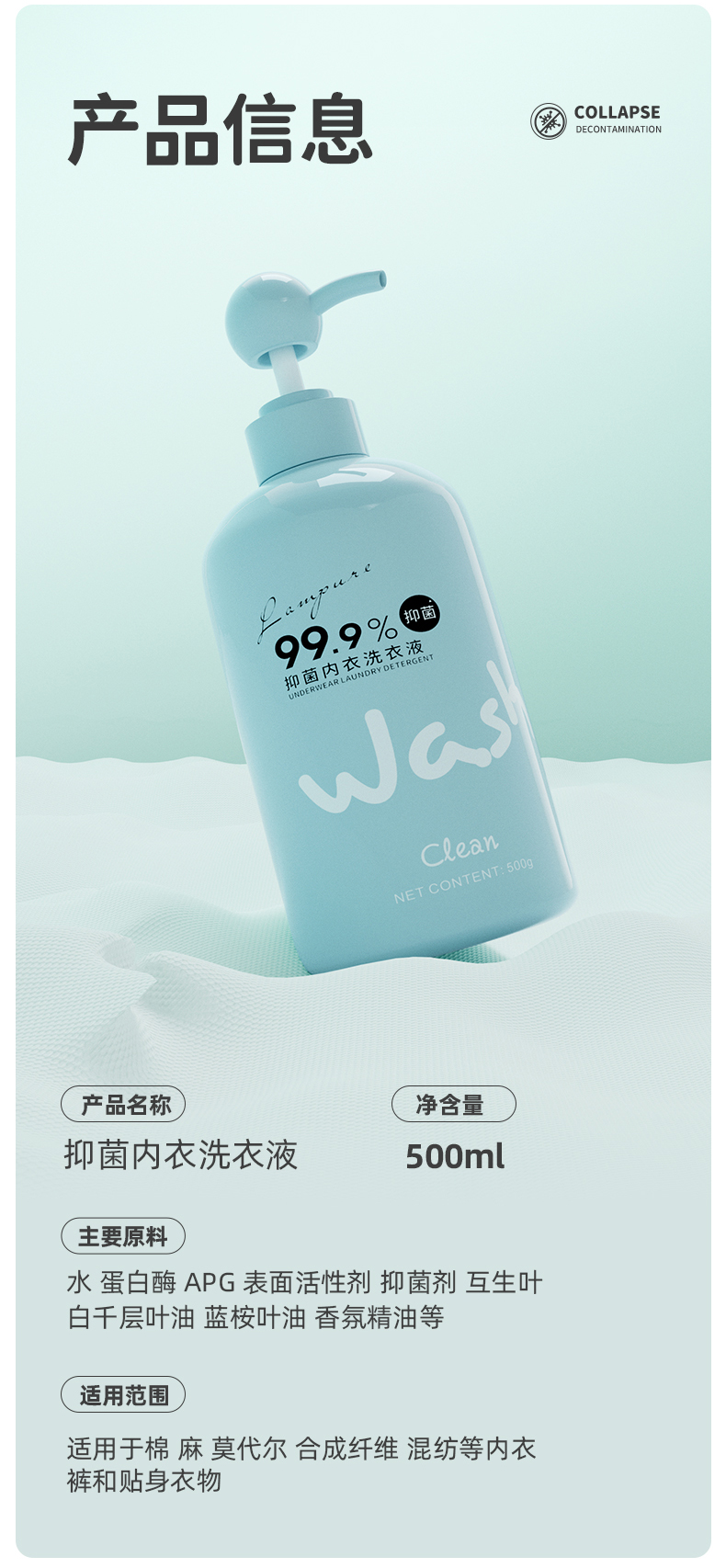 【蓝漂】内衣洗衣液 祛血渍去污去黄 深层洁净 内衣专用洗衣液