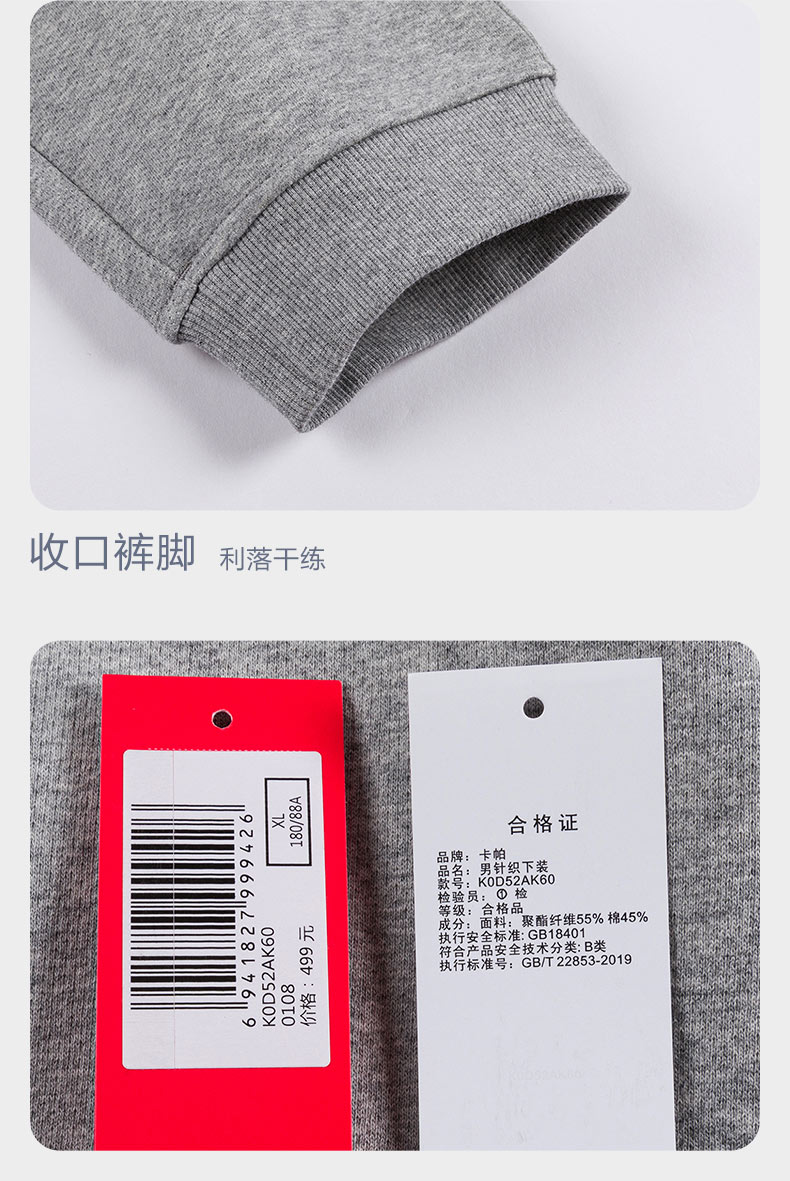 Kappa卡帕针织运动裤2023新款男抽绳松紧腰长裤休闲收口小脚卫裤