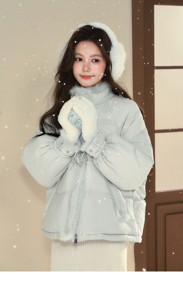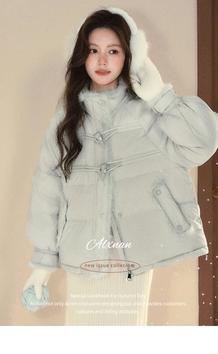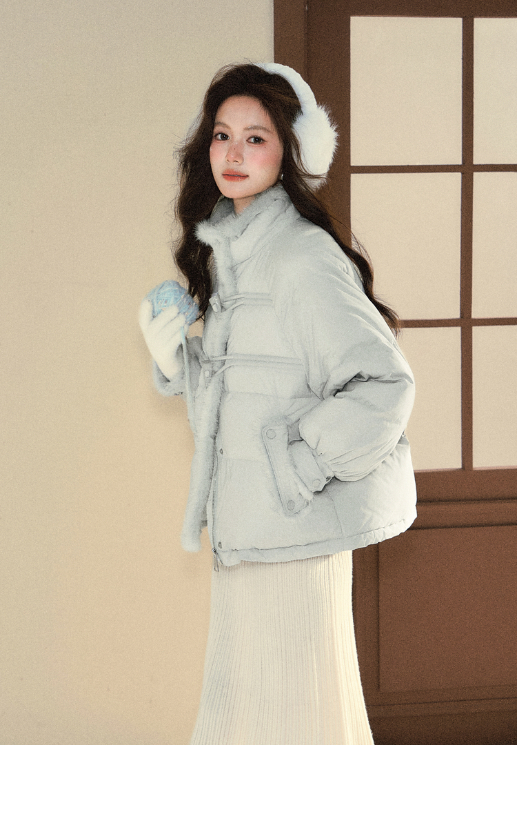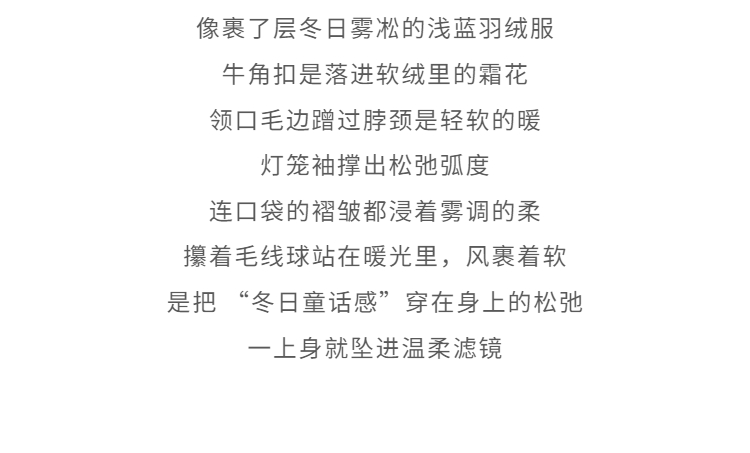 鹿向南「书章海盐」90白鸭绒蓝色牛角扣羽绒服女冬宽松保暖外套