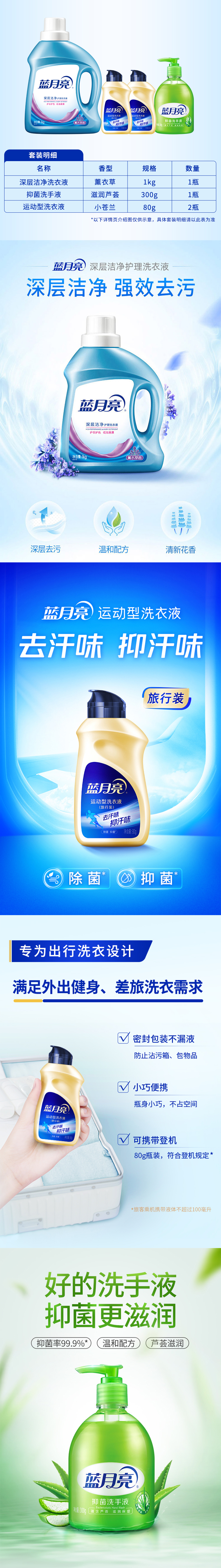 蓝月亮 薰衣草洁净洗衣液1kg+芦荟抑菌洗手液300g+运动型洗衣液旅行装80g*2(81000659)