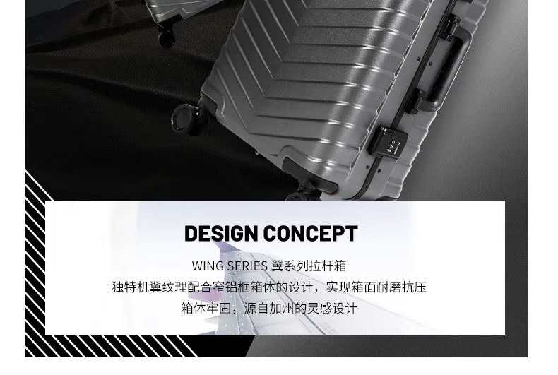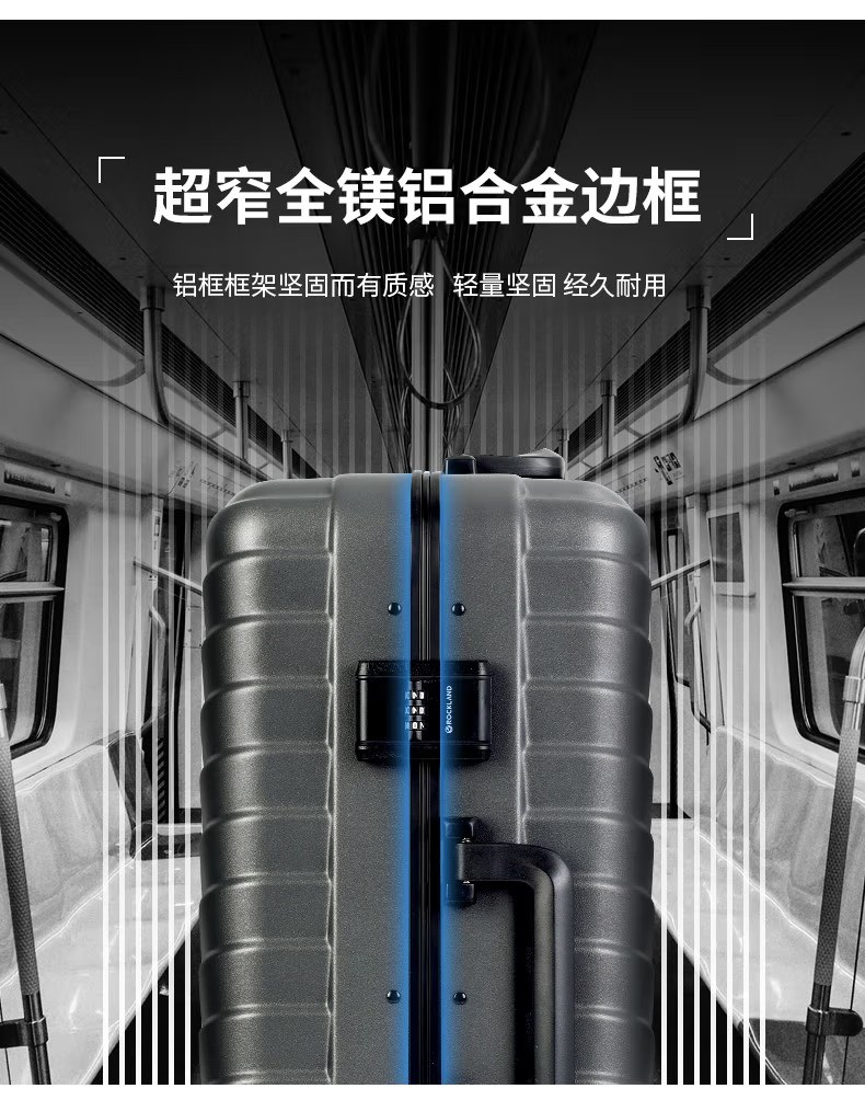 洛克兰翼系列窄铝框拉杆箱CRX20037B 深灰/蓝色—rxs
