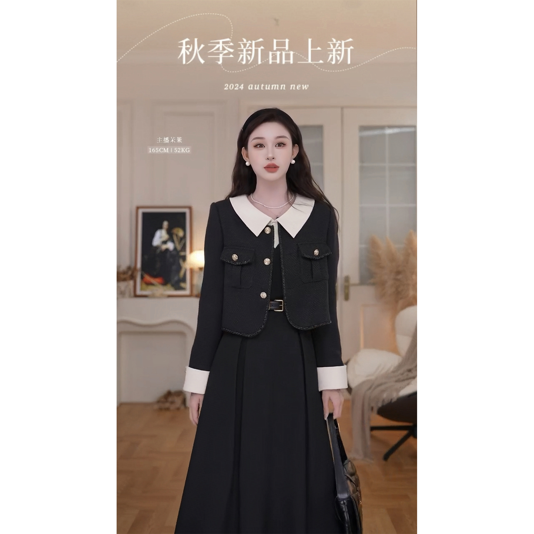 鹿向南「芭蕾黑巧」小香风外套连衣裙套装2025早秋新款气质两件套
