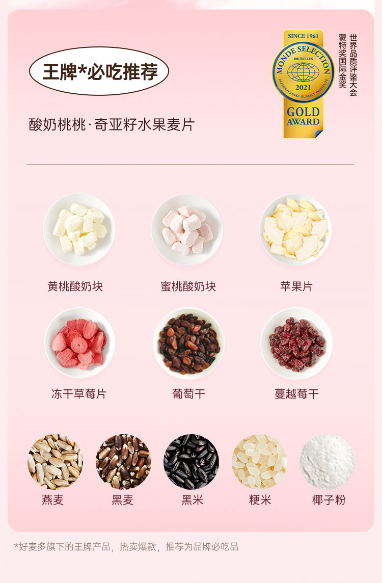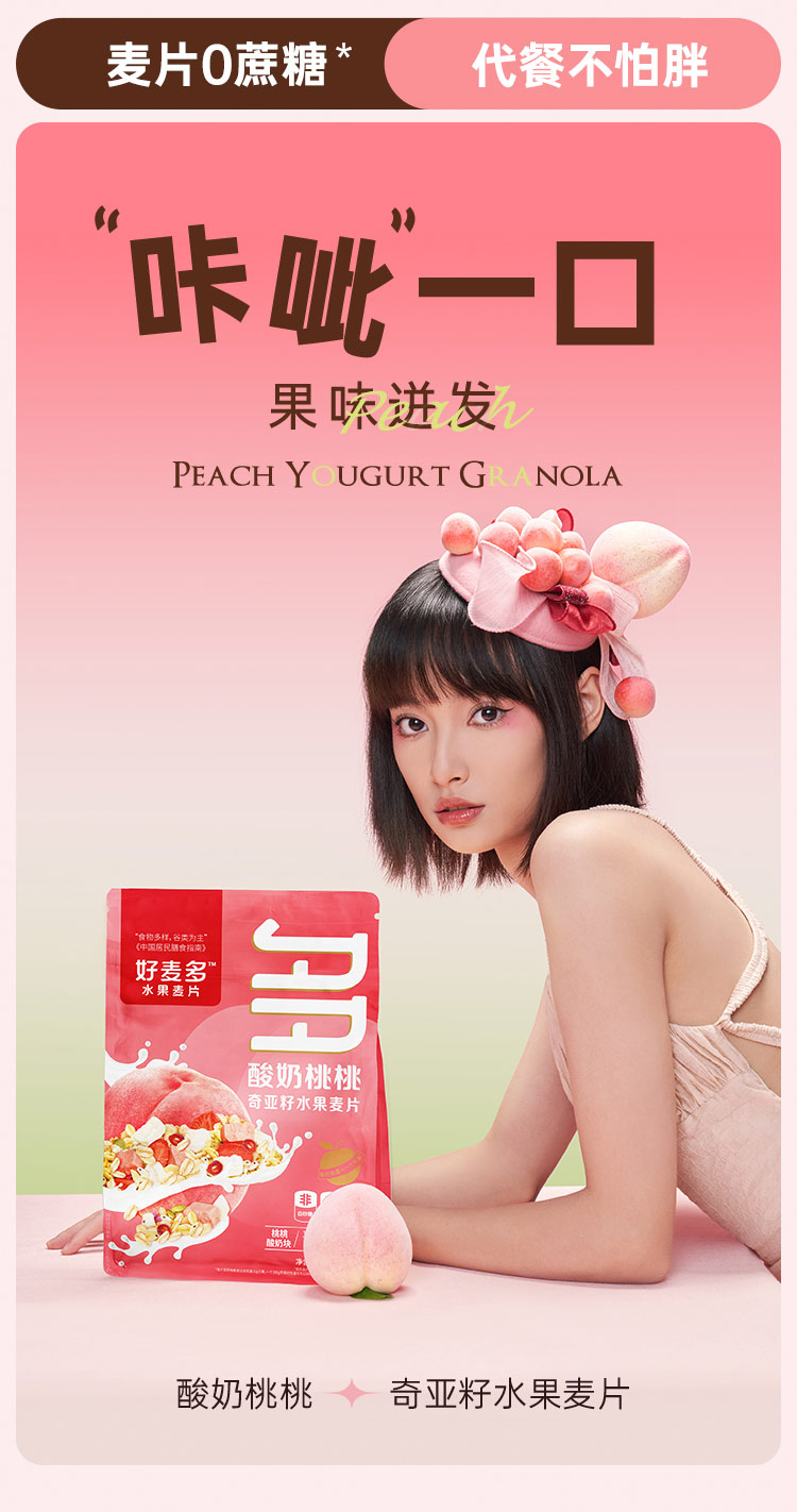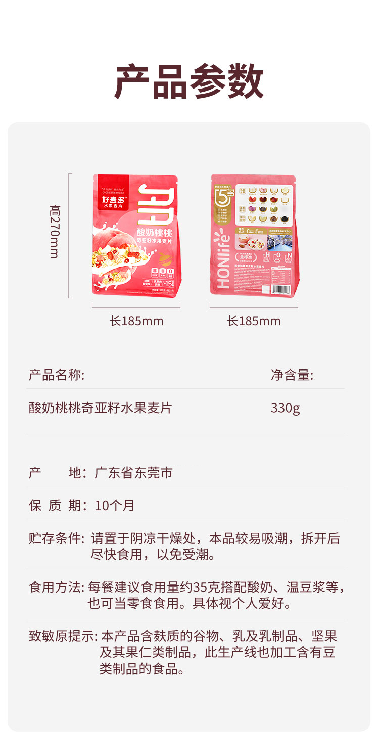【好麦多】酸奶桃桃奇亚籽水果麦片330g