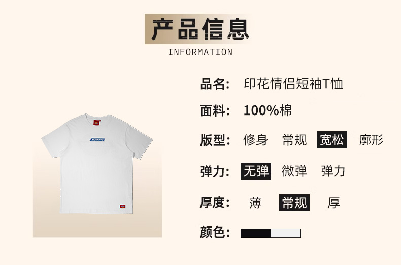 Dickies夏新款短袖男 休闲宽松舒适情侣男女同款t恤DK010363