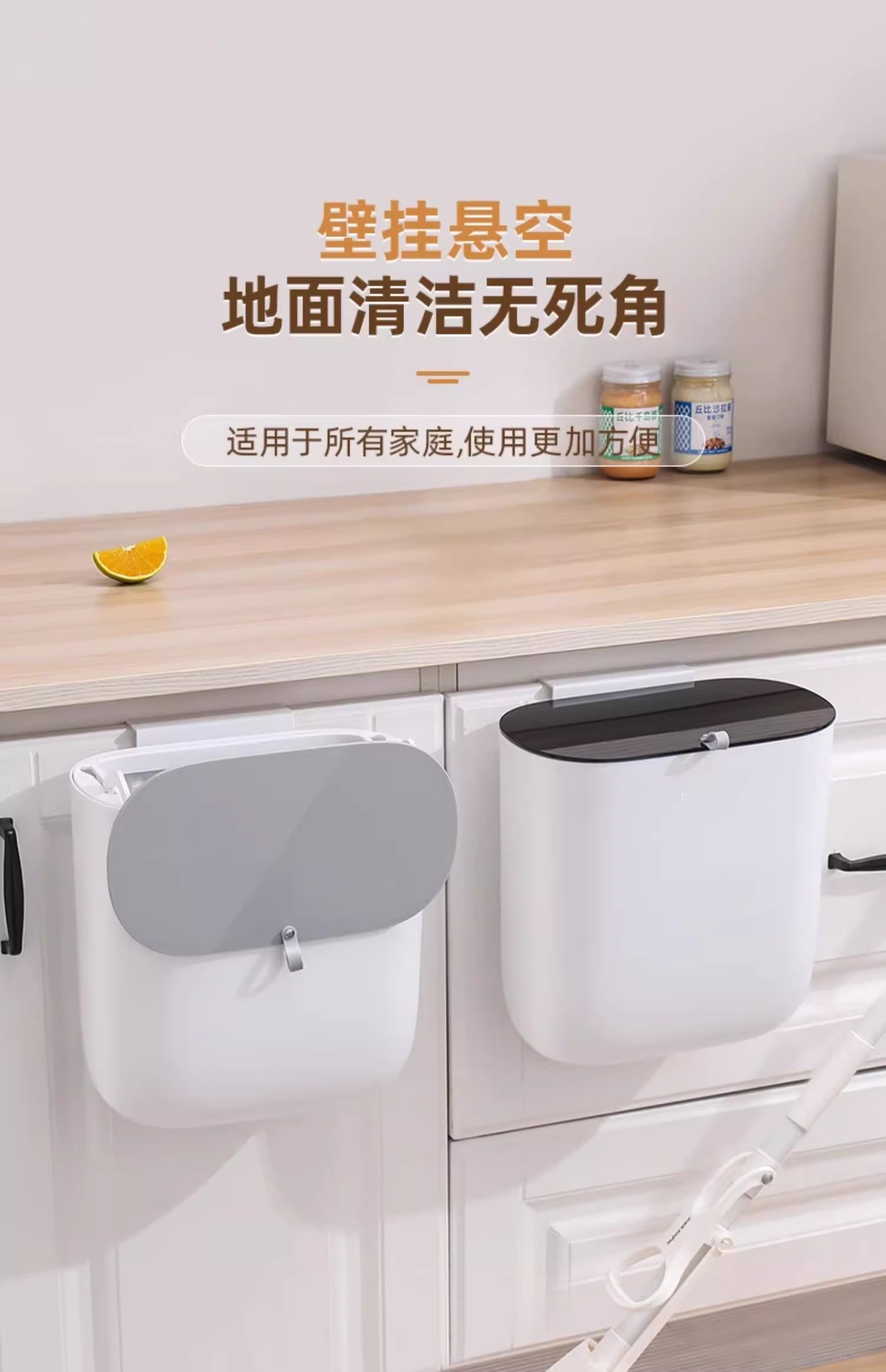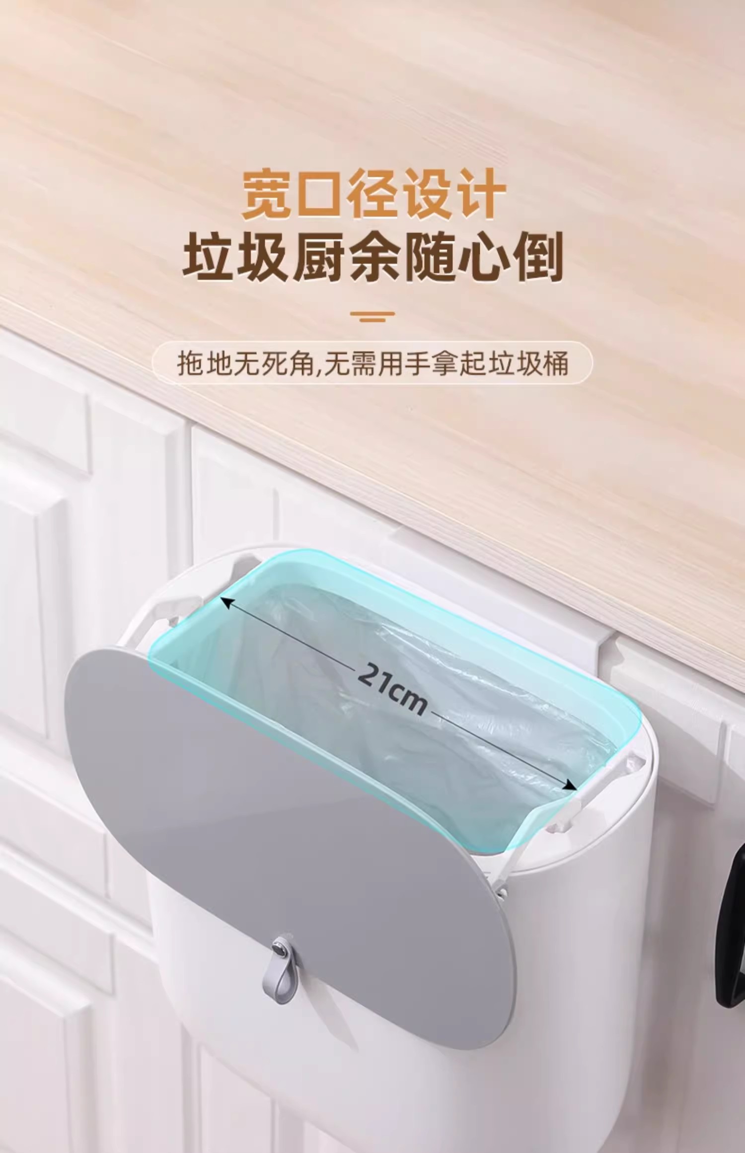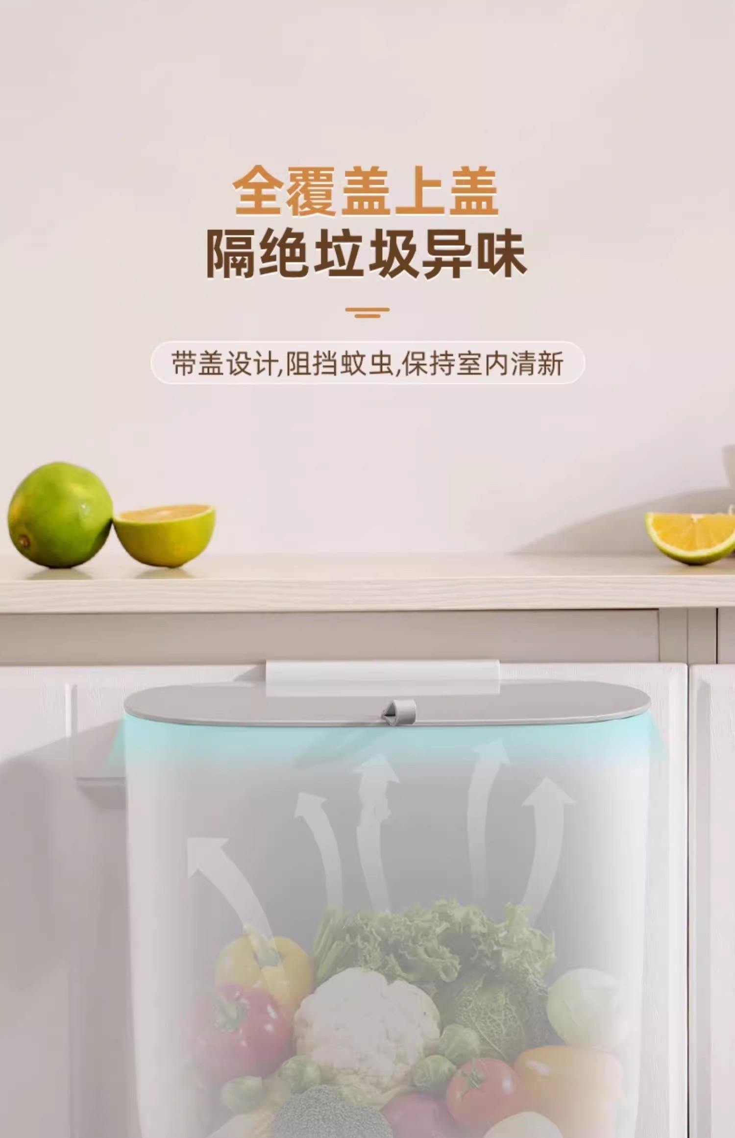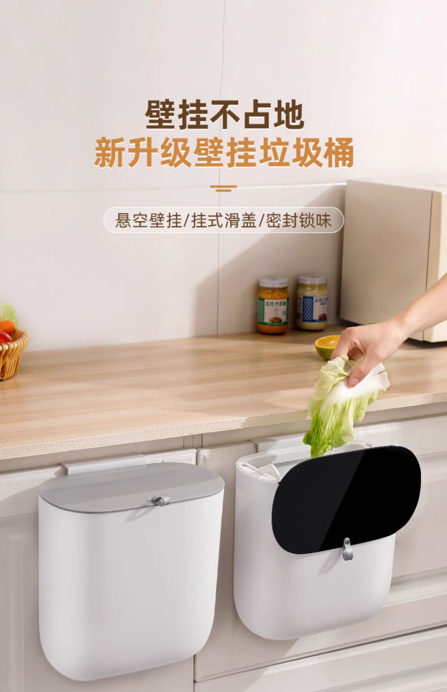 期待与你 厨房壁挂垃圾桶 家用带盖隔绝异味 厕所垃圾桶 S32001灰色