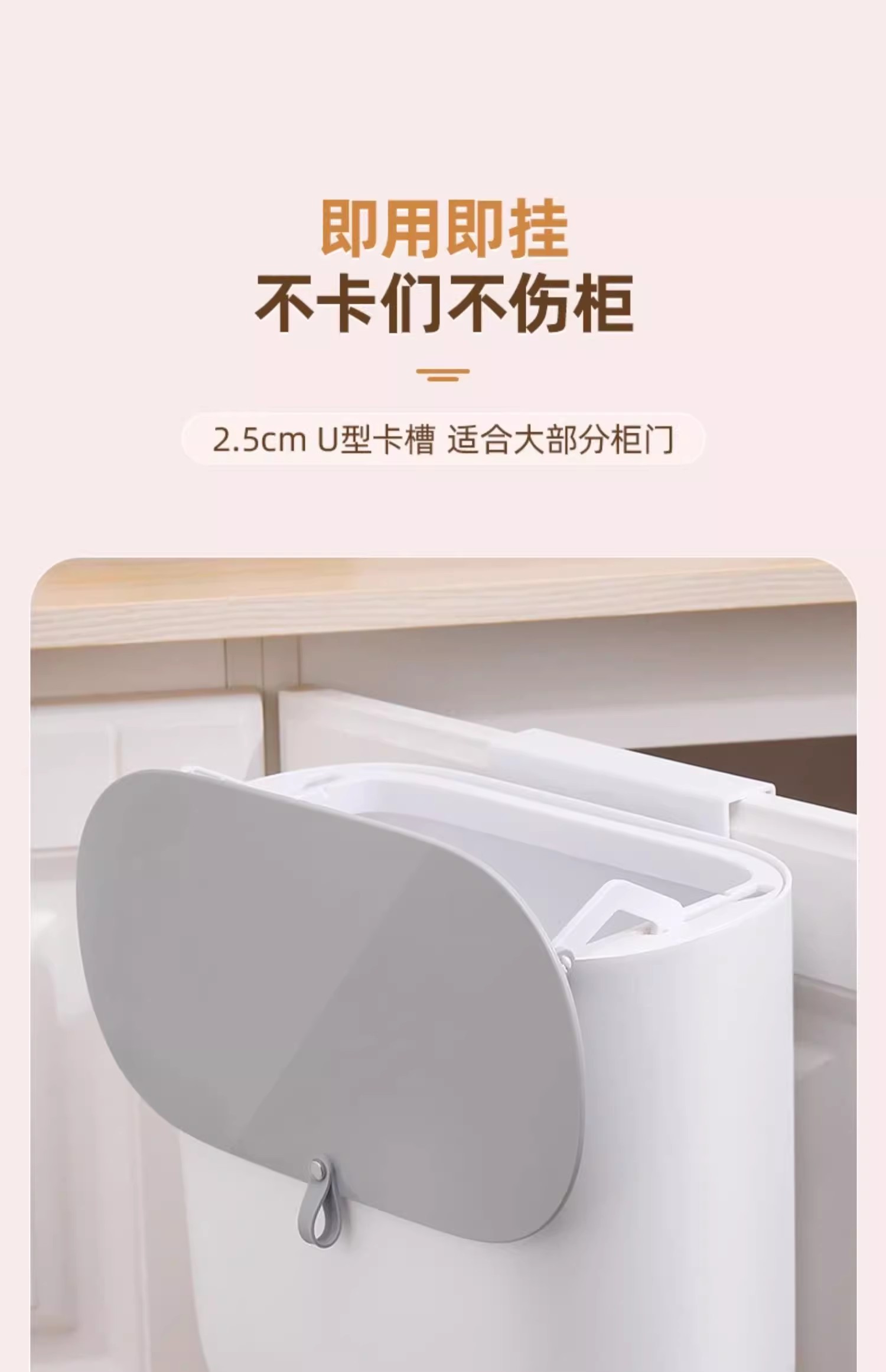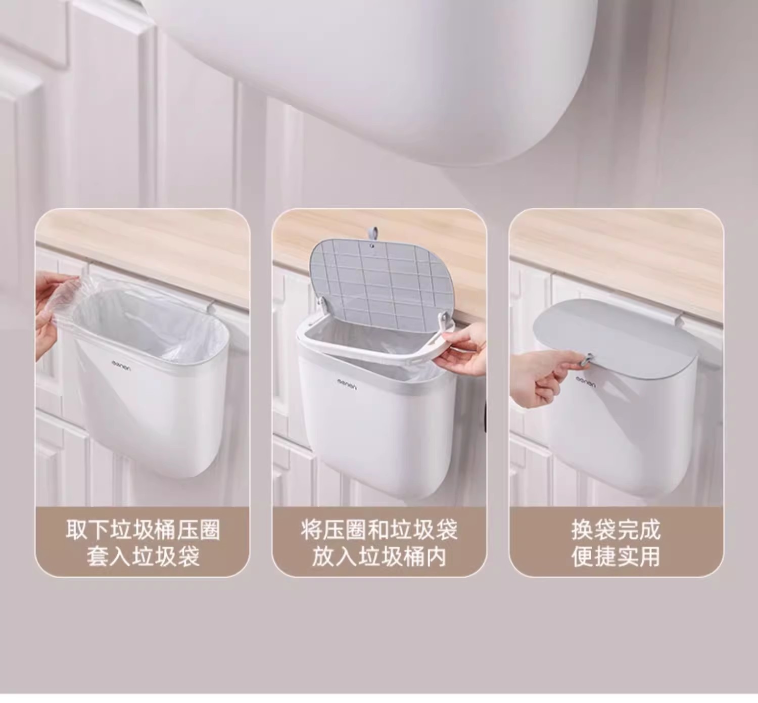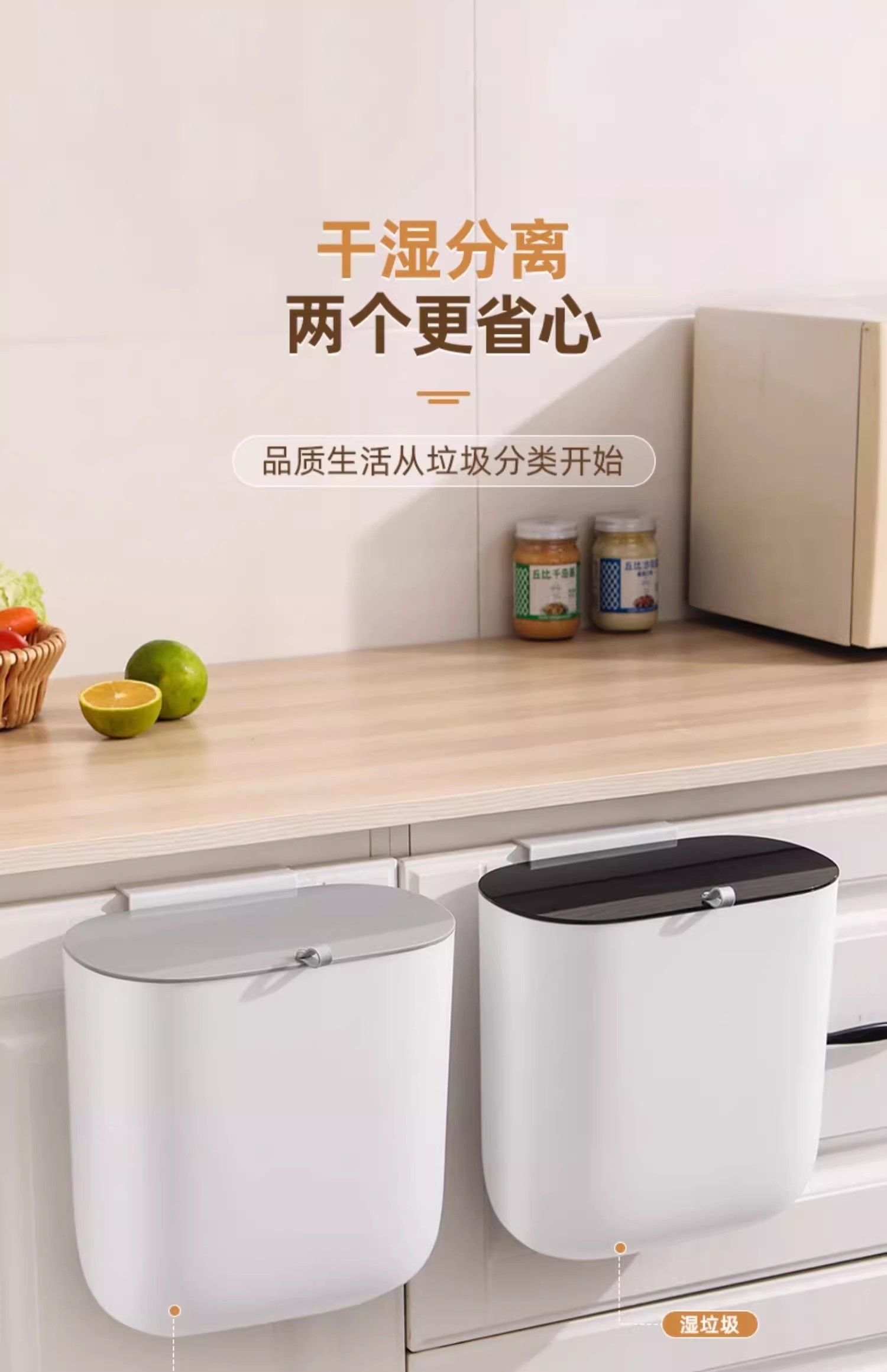 期待与你 厨房壁挂垃圾桶 家用带盖隔绝异味 厕所垃圾桶 S32001灰色
