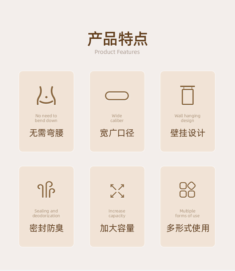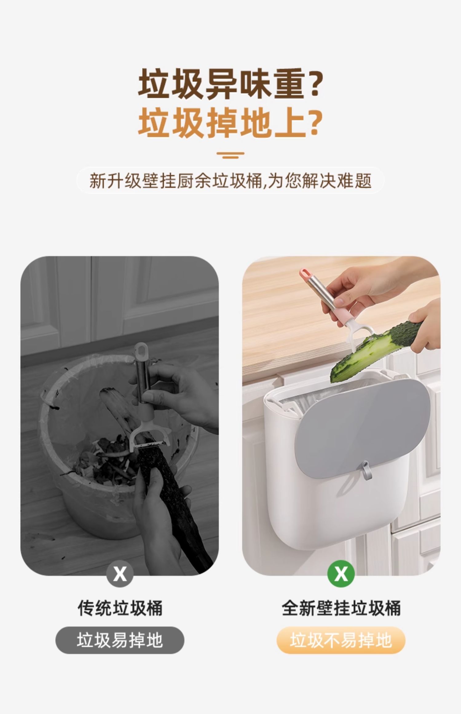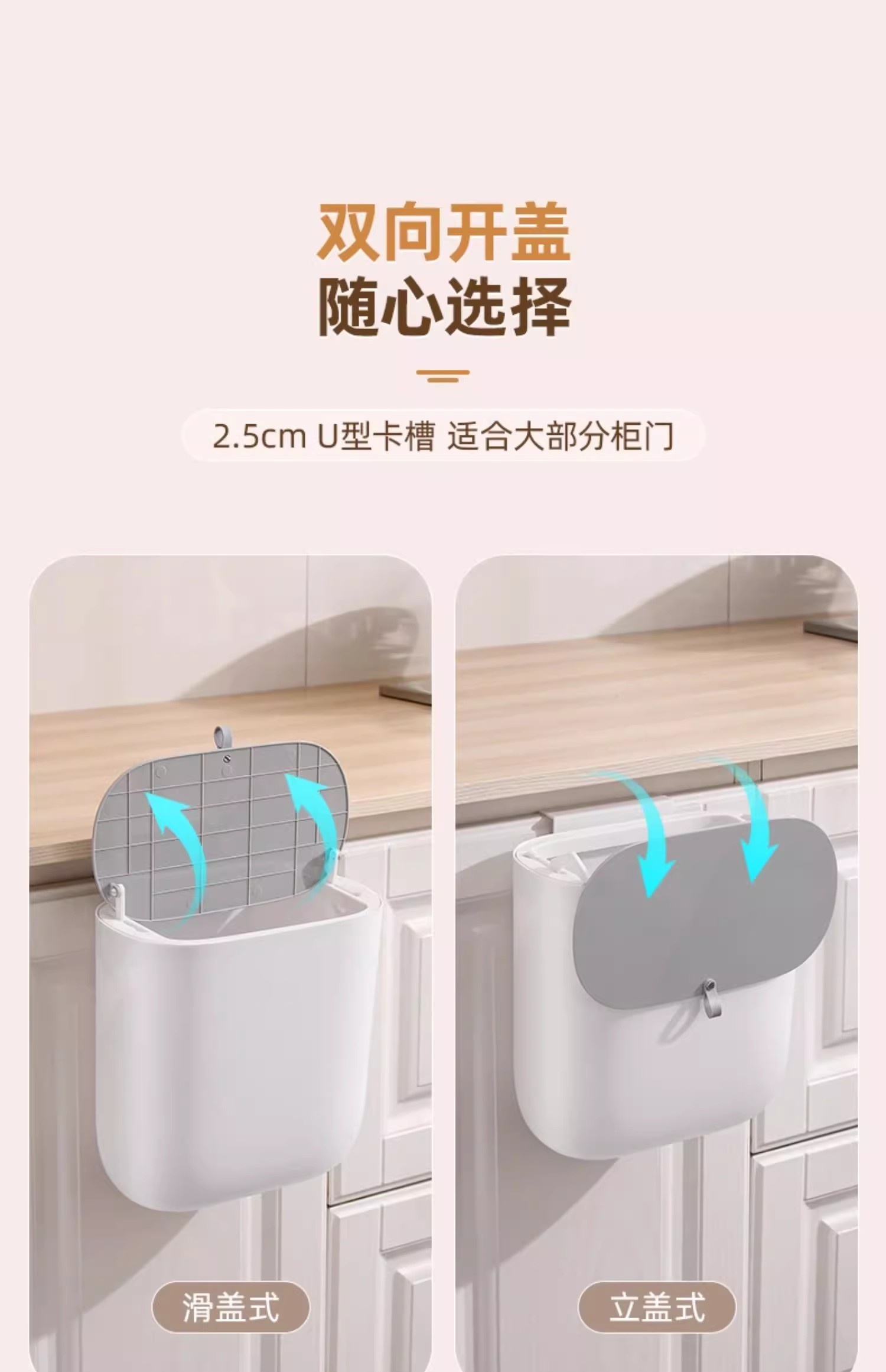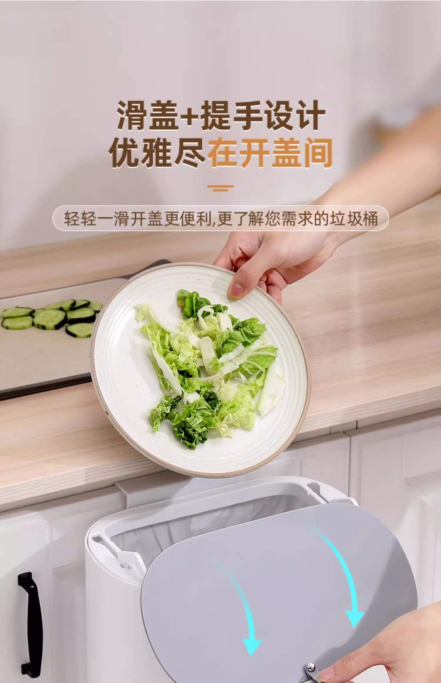期待与你 厨房壁挂垃圾桶 家用带盖隔绝异味 厕所垃圾桶 S32001灰色